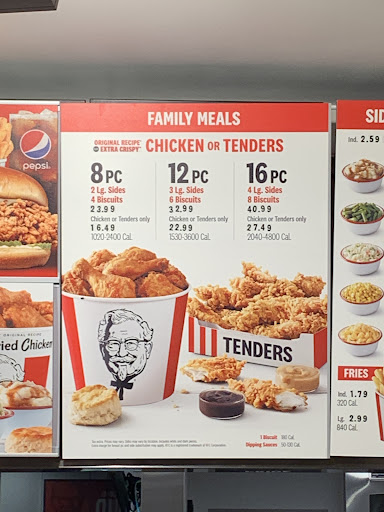 Read moreThis location is ALWAYS out of something we want to order. It’s been chicken tenders, biscuits, mac & cheese, chicken breasts, chicken pot pies, today it was cole slaw. We also discovered that now a 12 piece chicken strip bucket costs $22.99, and if you want the combo (which includes 6 biscuits and 3 large sides, and 6 sauces) it will cost you $32.99. This visit we ordered the 12 strip combo and were told they were out of cole slaw, and had to settle for mac & cheese. We also ordered a chicken pot pie, and had to settle for a chicken breast meal. It was 6:25 PM. At 6:47 we asked if our order was ready and were told they now have no mac & cheese. At this point we asked for a refund, and were told they would make more mac & cheese, and give us an extra mac & cheese and double biscuits. We waited another 12 minutes and they said they were sorry and the manager brought out our bag. We got in our car and checked the order, and were missing the extra biscuits, breast, biscuit, and cookie. We went back inside, and showed the error to the cashier, whom went back and returned to tell us there were no more breasts left. We once again said we wanted a refund, and after some discussion, settled for a thigh and 2 legs instead of the breast we paid for and left the store at 7:10 (45 minutes after our order). We ended up with a wing and 2 legs when we arrived home. Also had no honey sauce in the bag. To add to our dissatisfaction, the poor customer in front of us asked for a refund and left the store, the customer behind us told them he wanted a refund if they couldn’t get the mac & cheese finished soon, and another customer came in to order a pot pie and was told they had none, so he just left. We will NEVER return to this KFC again, and want this to be a...