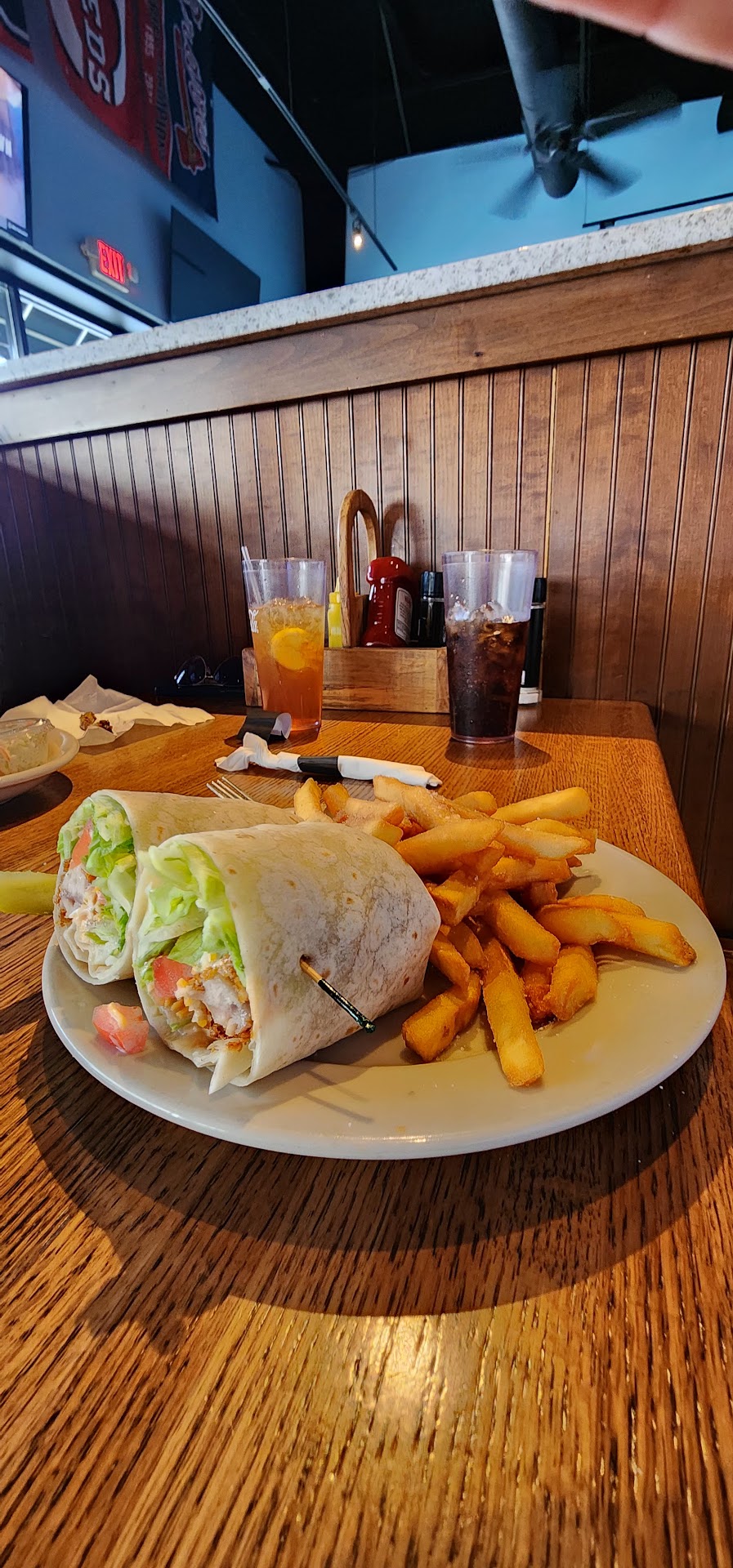 Read moreSame Tailgators minus a divider wall when you first go inside. Oh & the servers seem to be different too (one step away from Hooters outfits) but def the cooter shorts & tight tops for now. Unfortunately, this visit wasn't different from most others. Little to no service. Food was okay, though, not a lot of variety. I did try the S&P Talpia basket and thought it was great. When we first entered, the hostess didn't acknowledge us with even an apologetic smile as she seemed to be helping go over the entire menu with someone by phone. After a while, our server came saying she could seat us since she'd be our waitress. We appreciated that. (We had already decided before going in on how much we'd tolerate THIS time before we'd just leave... as we go about once every 6-18mos now). She took our order and brought our tea & water. She brought our food, and until she showed back up with our bill, no one checked on us. No drink refill, no offer of dessert, no offer of to-go cups or a box. She came back by to grab the bill/card, and as she rushed away again, we had to call out to her requesting a to-go box. This was between 3-4p on a Sat. I saw 2 other tables with different servers, so I'm not sure why...