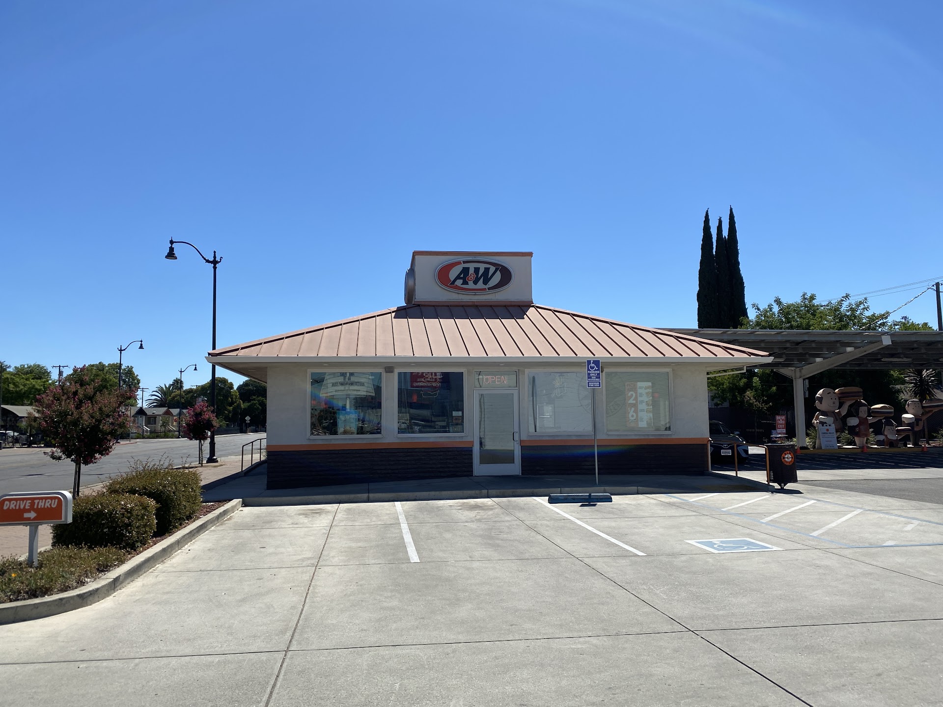 It's no different from the A&W Location in most parts of the Country, which is Unkool because it's in Lodi, California the town that is the starting place for Roy Allen's Rootbeer stand in 1919. They DON'T seem to care about being the best location, just the most modern money driven one. If you call them, they won't answer but put you on voice mail so they can supposedly "call you back". I was really hoping they would be PACKED like IN-N-OUT to NOT answer my phone calls after three times, but they weren't. I've worked at a MUCH BETTER AND BUSIER Diner where we didn't get the phone ring without answering it, EVEN during a RUSH or HOLIDAY CROWD when we were understaffed! So there's no EXUSES for them from me. They employees seem to all be dragging there Butts around unhappy which makes there costumer service poor because they aren't exited to be in the town where A&W started from give anyone mediocre service as they go through the motions to get your order and on to the next person. I learned from the Manager as well that this location as I seen on Google maps WAS, let me say that again WAS an A&W Drive-in hop restaurant. BUT the now current owner changed the hops into a solar panel Drive thru and car port. Now here's the thing out the Drive thru, if you look at the pictures I have up. You will see that it's not like other "fast food" Drive thrus, you go around the solar panels port to a menu board and speaker like usual, BUT once you place your order, you pull off closer to the building where you WAIT in your CAR for them to do a carry out FOR YOU to your car as they COME from the BACK door. Sound a lot similar to a DRIVE-IN Resturant to me EXCEPT you drive off once you get you food, BUT WAIT you can do they SAME after you order from a CAR HOP at the DRIVE-IN! they reason some so hacked is because it's HARD TO FIND stand ALONE A&W joints, then Put on top of that an original A&W DRIVE-IN! Why can't they have kept the spots where cars park NOW as Drive-in hops? Then you have the best of both worlds and DON'T throw away American tradition?? Or Just have it where you take down two Drive-in hop spots so there can be a Drive-Thru? Either way, it's the ONLY A&W in Lodi because Roy Allen's Rootbeer stand is GONE so it leaves this joint to uphold the standard for what you see in A&W. The reason they Took away a DRIVE-IN is because "times are changing and they need to keep up with the days now of business and get more money" so forget that it's HARD to find an A&W in a building BY ITS SELF now-a-days, FORGET that's Drive-in Resturant are an AMERICAN TRADITION, Forget that A&W business is doing good because they have MANY other locations but COULDN'T KEEP THIS ONE TRADITIONAL because they WANT MORE MONEY. A&W SHOULD have keep this a Drive-in Resturant with a new Drive thru, and they SHOULD have SAVED Roy Allen's Rootbeer stand on Pine St. I would only say that this location is good for looking at how GREAT A&W once WAS but NO LONGER IS. I didn't want any food here because for some reason A&W is notorious for putting hair in my food almost every time I order it. But for my cousin EVERYTIME at any location for some NASTY...