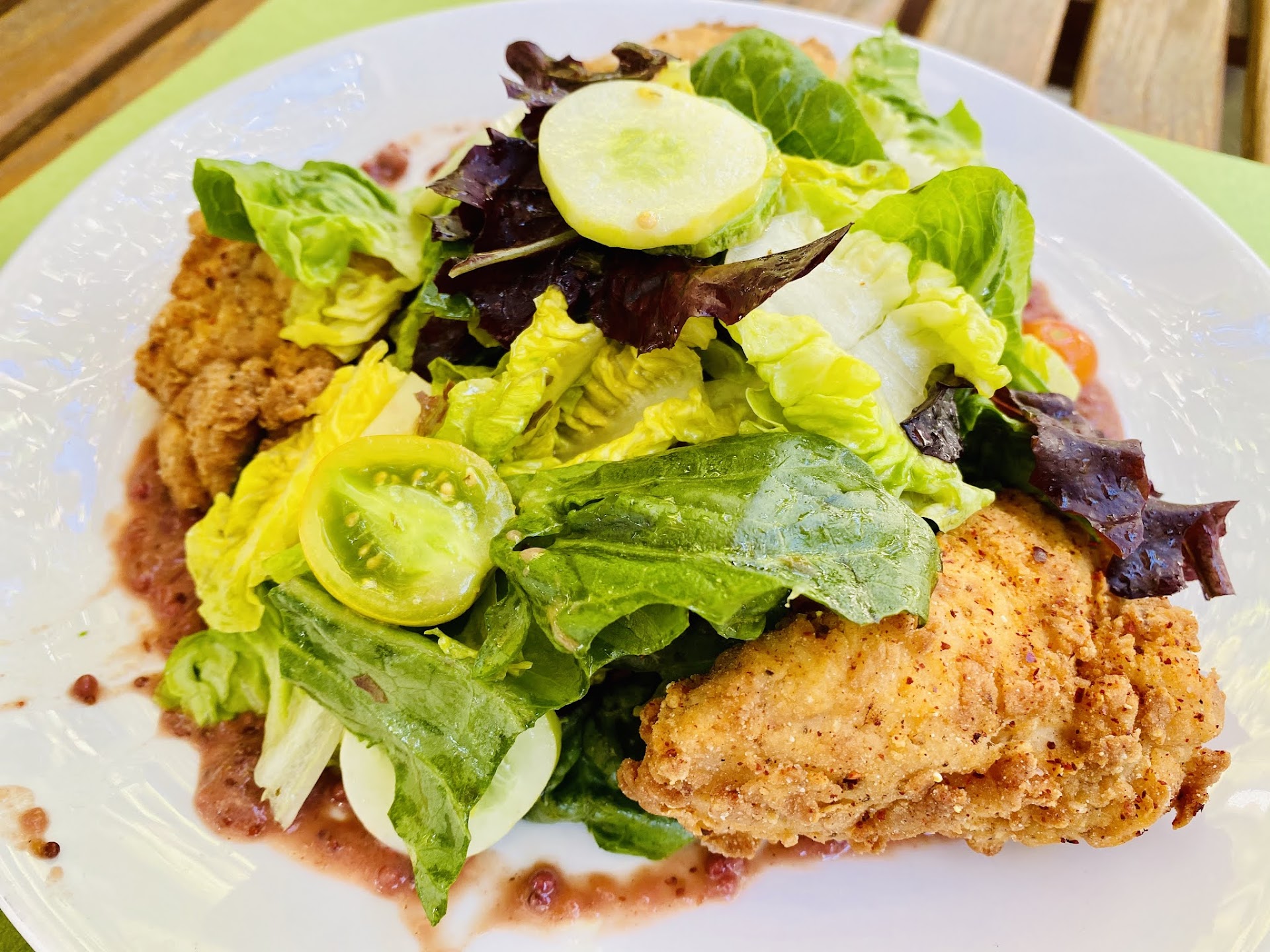 ---- Atmosphere:---- Outside: The restaurant is located on the side of Wine & Roses, behind their cafƩ. The setting is picturesque, surrounded by trees and gardens, giving you the feel of being in wine country. You can see caged birds, including parrots, and enjoy a peaceful walk through the grounds. Inside: The interior was better when this restaurant was not under the management of a generic company and investor-owned. This mangament company came in and sucked the soul out of the place. The uniqueness has left the area.