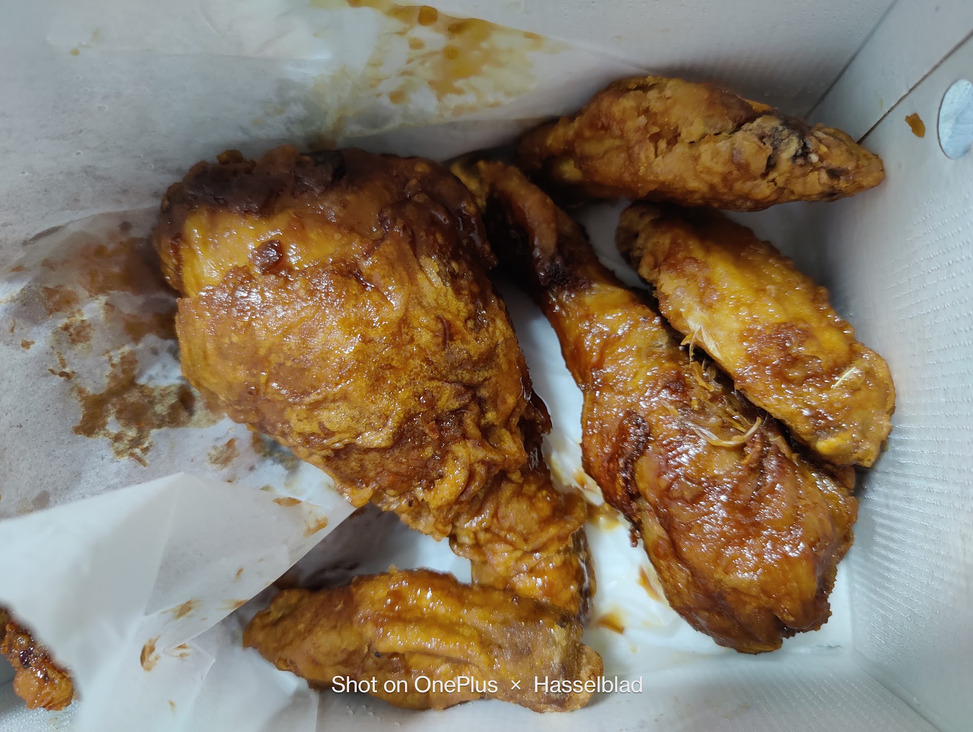 We decided to share our entrees we both ordered the Medium Combo, which is 10 Chicken Wings and 5 Chicken Drumsticks. We decided to go half & half for the sauces. Our wings were Spicy and Drumsticks were Soy Garlic. Both were crispy, even with the sauce. The wings were very spicy, so much so, that it made me tear up a bit lol I had to get a Calpico drink (Yogurt base drink) to soothe my palate... My wife couldn't handle the heat at all! But that's the way I like my spicy chicken, on fire!. The drumsticks were so tasty and full of garlic flavor.