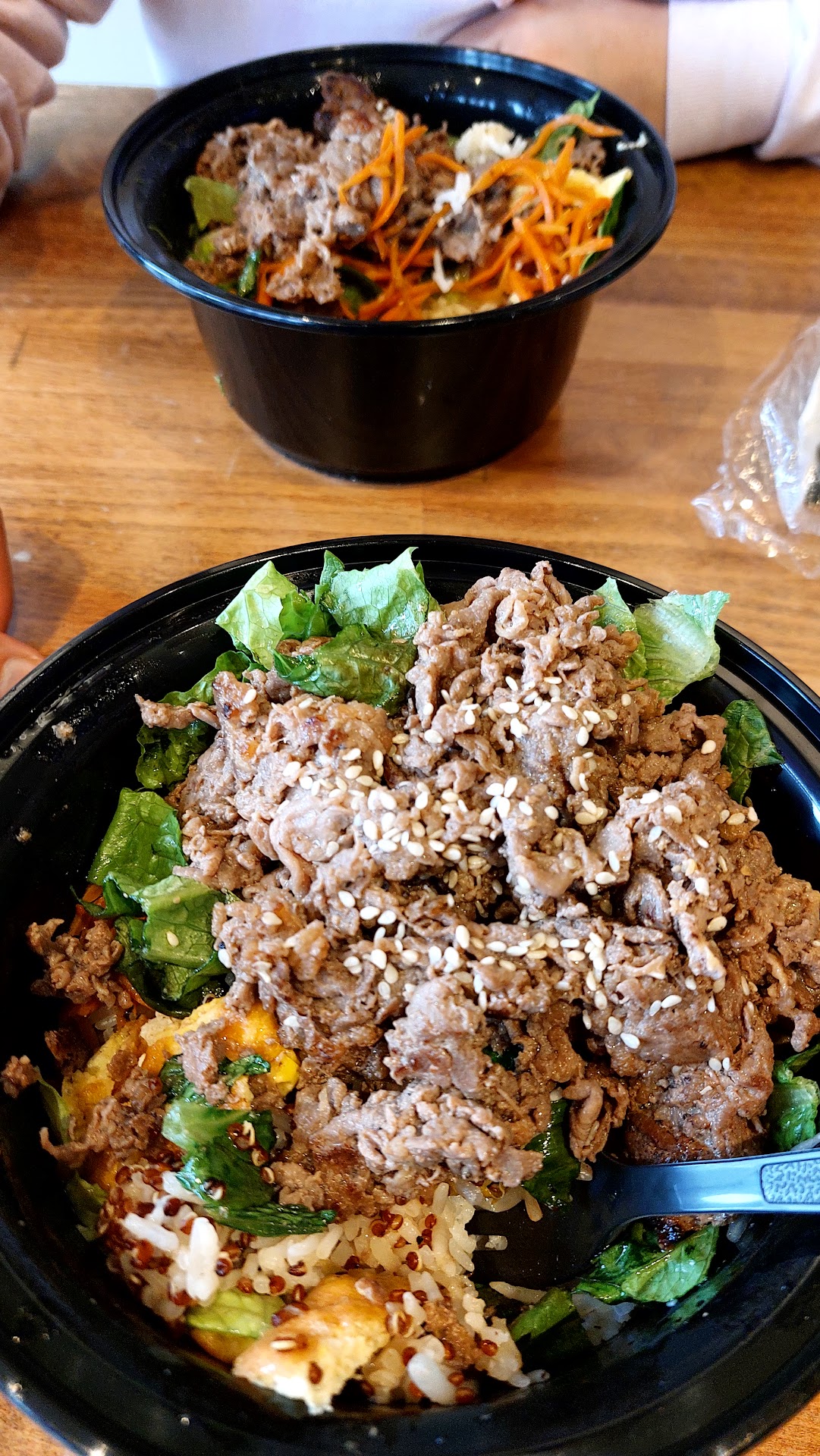 Then we got the Bulgogi Bibimbap which is beef, rice, quinoa, vegetables and red pepper paste. She enjoyed this dish so much, she said that it the be7ef was tender and delicious, the vegetables were cooked properly, the quinoa was soft. She lived this dish the most, so much so that she was claiming it for her own, but she eventually shared and allowed me a taste of our "shared" meal and I agree it was excellent!