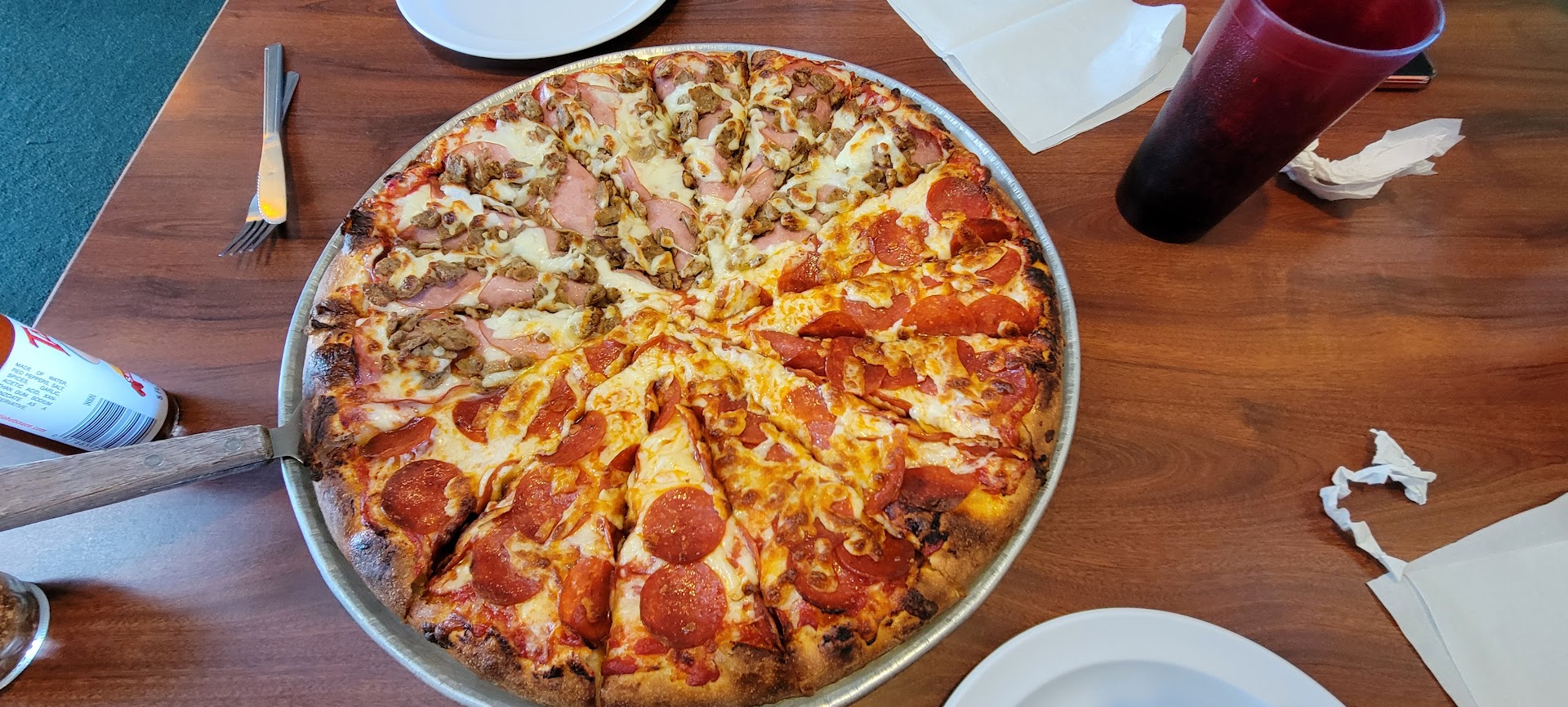 Pedimos una pizza Suprema/Hawaiana. Fue excelente. La corteza del pan y todas las coberturas eran perfectas y de alta calidad. No se cortaron esquinas cuando prepararon nuestro pedido. El personal fue muy servicial y atento. Salimos muy...