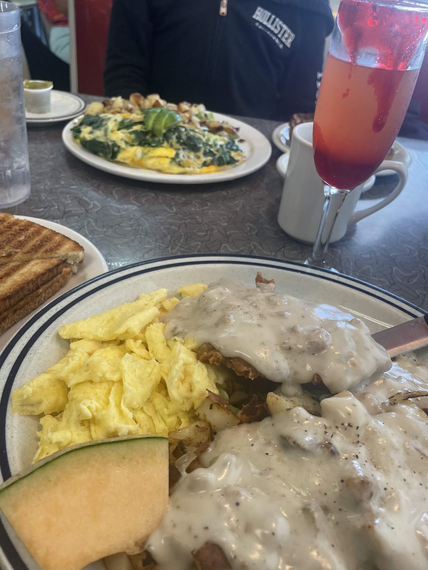 I love love love this place so much! I have lived in the area for years and always wanted to try this place but never did until about almost 2 years ago when me and boyfriend first started dating and I told him to let’s go try this place out. I was always attracted to the old Hollywood 50s theme and this place gives all of those feels and more. First off everyone is super nice here and I love that it is family owned and ran.I also love the food and especially the thick, creamy, and flavorful country gravy and the sweet, bubbly, and crisp mimosa. I can put the country gravy on everything lol and I have to have the delicious strawberry pineapple mimosa every visit!The food is always fresh and have that homemade with love taste. I thought maybe my first experience here I got lucky with the food and service but no EVERYTIME I have visited I get the same homey service and family vibe experience. I have made this my regular spot and even tho I used to only visit with my boyfriend( this was “our spot”) now I have brung friends and family here because I want everyone to experience the love I feel here.I even visit often alone and the 20 minutes I travel to here is worth every second. Being experienced as a server and cook myself, I can really appreciate an...