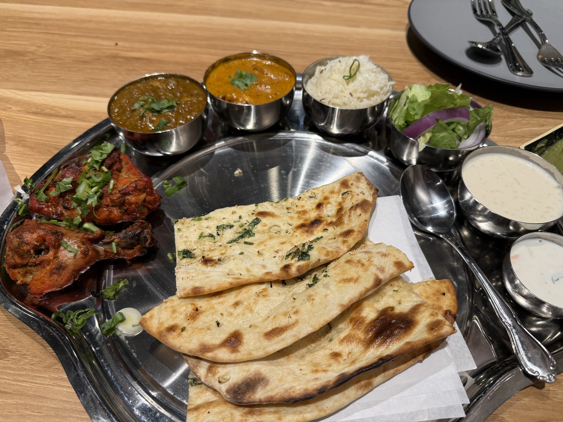 Read moreIt was our first time eating here and it absolutely will not be our last. We ordered the veggie platter #2 (it's called something else but it was a platter of food), butter chicken curry, lamb curry, and mango coconut curry. Everything was so delicious. The garlic nan actually tasted like garlic which I've never had happen at the 3 other Indian restaurants I've been to. The butter chicken my son ordered was so creamy, my lamb curry had so much flavor I couldn't even tell it was lamb(which I was a tiny bit sad about since I finally started to like it's mildly gamey flavor but it's tenderness and richness made up for it), and my boyfriends mango coconut curry must have been amazing because he wouldn't let me try it even though we were supposed to all share just to make the most of trying somewhere new. The platter was probably my favorite thing though. It had a lentil curry that was wonderful but the paneer curry took the cake. It was shockingly sweet while maintaining it's spiciness. The fire roasted cheese and veggies were so good too. This place has such an amazing vegetarian selection that I could easily eat no meat here and not miss it for a second. I honestly can't wait for the next time we go shopping in Lodi with plans for lunch because we'll probably...