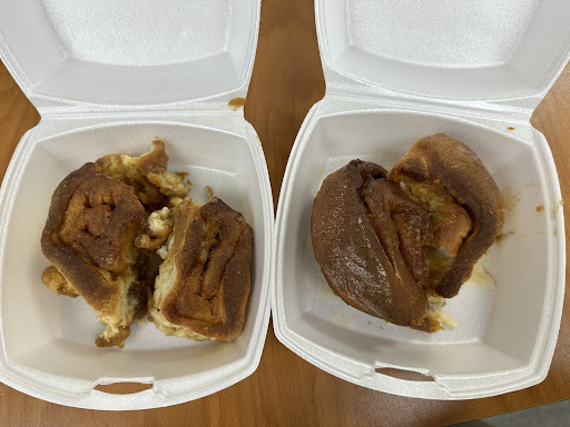 Sad to say I’m a bit disappointed and confused. I was excited to try the cinnamon rolls that I’ve heard so much about and seen online. Before work, i decided to stop and get some. When I arrived, I didnt see any in the display and asked if more were available. I was told there were plenty and I asked for 3 cinnamon rolls along with basque cheesecake and banana pudding. The rolls were in small white boxes and I didn’t think to open them before leaving. When I got to work, to my surprise, I’m not sure what I received. All the boxes had pieces of what looked like cinnamon rolls.. But they were dense and dry. No cream cheese icing like i’ve seen on instagram. Not sure if there was a mix up or I ordered...
