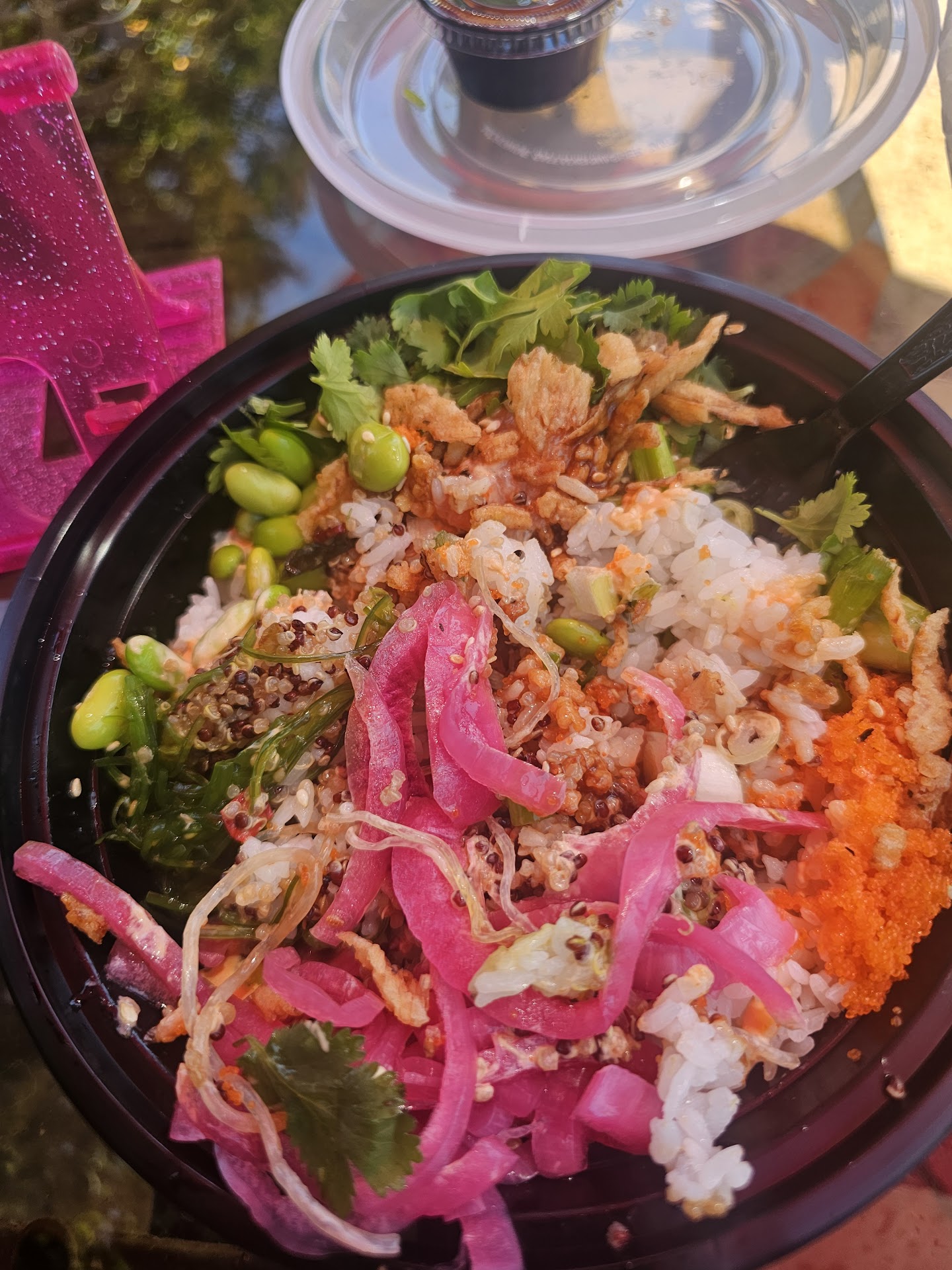 Read moreFirst timer...wasn't sure if I would like ir. Here's what I got: child's bowl-white rice, quinoa, kelp noodles, (house sauce), salmon, tobiko, edammame, pickled onion, seaweed salad, (house sauce) crunchy onions, furikake, cilantro (teriyaki-ginger sauce)...I can't remember it all! It was DELICIOUS! I HIGHLY RECOMMEND! If you like sushi you will LOVE this! If you don't, you will LOVE this!! I can't wait until tomorrow. I will get another one. They are open 7am-7pm (i think) Don't sleep...