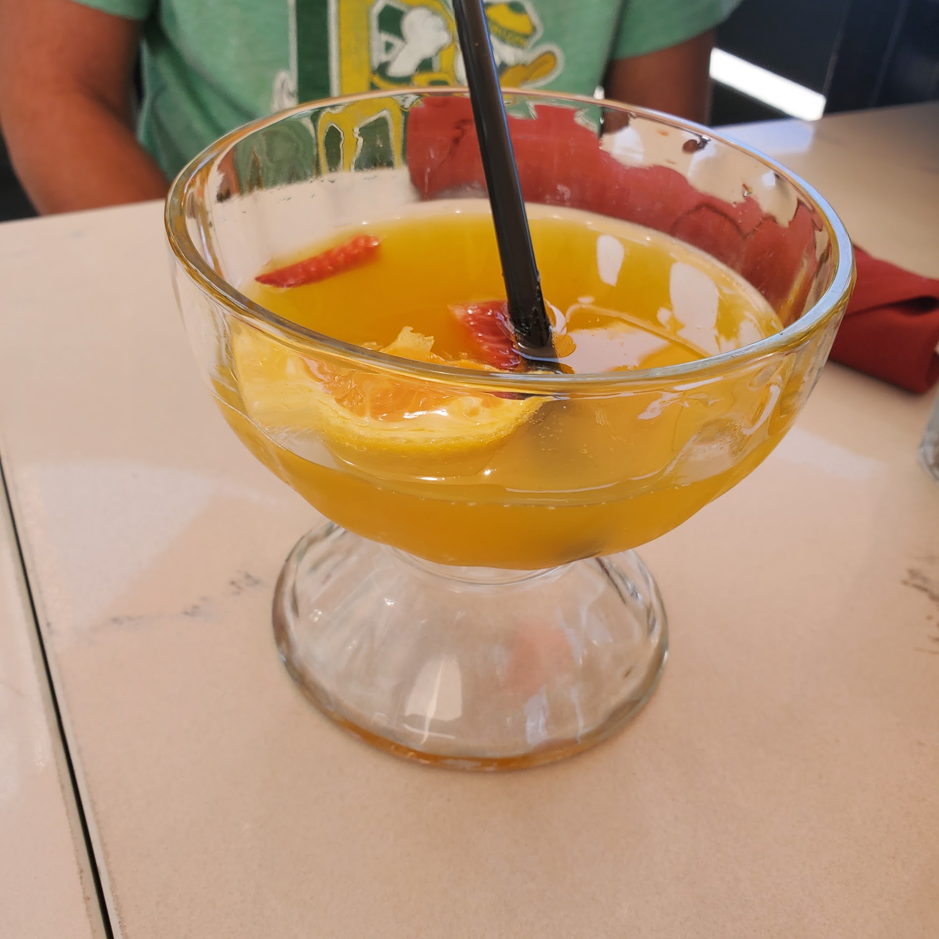 This is a solid 4.5/5 stars but I'd rather mark them a 5 than a 4. Came here today with friends for a little day trip to Lodi. I've heard great things about this place so I've had it saved on my map for a long while. Friends were very excited to have mimosas. We got there and the host stand was empty so we were a little confused. The inside of the restaurant was so dark it took a second for my eyes to adjust. As we stood there, an employee assured us a hostess would be with us shortly so we walked back outside to the host stand. The hostess asked us where we'd like to sit, inside or outside, so we decided to sit outside. She let us know very quickly that menu was the be scanned via qr code (ugh) on the table. Apparently I was the only who heard her though so it took a second for friends to realize this. Waited was there fairly quick to take our drink order before we had had a chance to take a look at the menu but he brought waters for us while we looked. When we finally ordered, I stayed with just the water and ordered the bananas foster French Toast combo with scrambled eggs and EXTRA crispy bacon. Friend 1 got Pomegranate Mimosa and Nutella French Toast (see photos). Friend 2 got Mango Mimosa (see photo) and some type of eggs benedict. We were amused that the Mimosa glasses appeared to be glass ice cream dishes since they usually come in champagne flutes. The Nutella French Toast looked really good and Friend 1 had no complaints. She finished her Mimosa but took about half of her plate home. Friend 2 finished both drink and dish. I started with my eggs that looked a little weird but tasted fine. My bacon was not extra crispy and one could argue barely crispy. I was shocked buy the size of the French Toast. My only complaint about the dish was the bananas. They looked as though they had been sitting sliced for a long while as the inside had turned fairly black by the time I had received them (see photo). The French Toast was delicious though and I finished it all. The entire time we were there it was so noisy inside. The music was good but it was so much noise from all angles. Definitely tough for me with auditory issues. I might come back if someone else was paying. It was all priced a little high. Like amount of food was good but why is a glass of juice $5 with no refills? Why is 2 pancakes by themselves $10? Nice place over all with delicious food and...