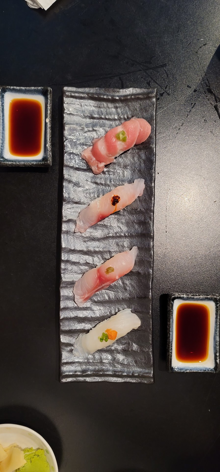 Then finally, the chef's catch of the day special. We think we mistakenly ate it in the wrong order for our preferences, because it started with strong flavor and ended with a light flavor (pink to white nigiri), but it still turned out so well regardless. It was just so delicious!