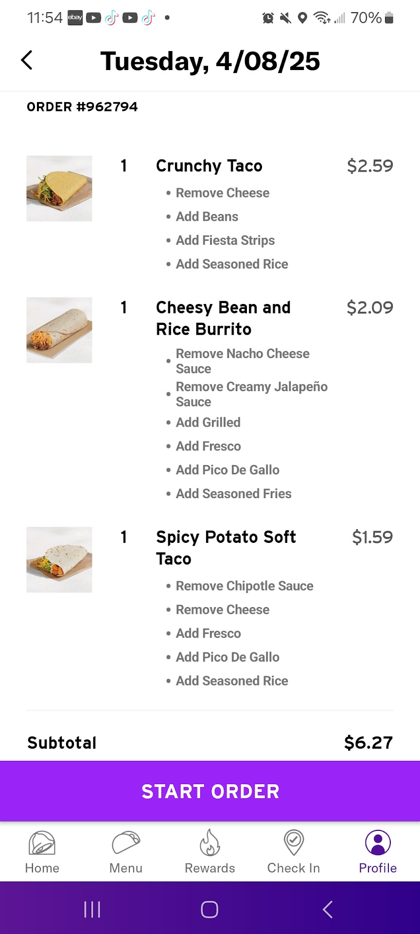 That's my only real issue here. The drive-thru is fast and the food is made up to the usual Taco Bell standard (for better or worse). It's usually busy, so the issue may not always be present and it is somewhat understandable, but it is an annoyance that may slightly alter...