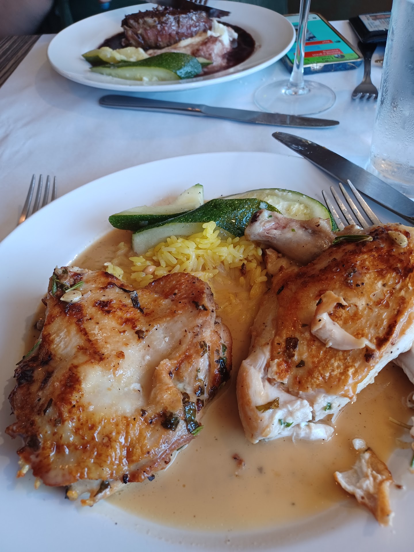 Read moreWe were excited to go. Have heard about this place for a few months now. We had the fried Gnocchi appetizer, it was INCREDIBLE! The hubby ordered the steak, it was great. I ordered the chicken pasta. That's unfortunately where I went wrong. I'm sure it's great for someone else, but not my favorite flavor profile. The server said tossed in olive oil, it wasn't, it was like soup. He also mentioned olives and capers. I normally would like this, but it was kalamata olives and capers. It was so insanely salty I couldn't do it! I had 3 or 4 bites and done! It was super pricey for what I had and couldn't eat it. When I told the server, he told me, "wow that's a hard position for you to be in." He didn't offer to take it off, discount it or even remake it. So that just threw me off. I had high hopes. It was the first dinner I had out in weeks after being sick. So, I was very bummed. The server, until that 1 comment, was very GOOD and helpful! So I think it was just a random situation he didn't know what to say. The only other thing was out Ceasar salad was pale green almost yellow and super bitter. I'm sure we will try 1 more time. But for 2 ppl about $100, and we had water. No drinks...