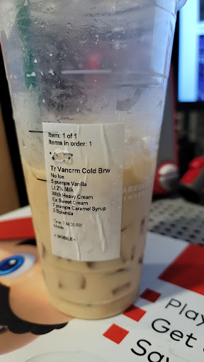 I'm used to Starbucks around the world going above and beyond, however this store might need a refresher on customer service, especially during busier times. It's stressful during those busier times, but one of the reasons people are willing to pay $5 for a cup of coffee is because of Starbucks customer service. I was in yesterday and another customer asked if one of the good items the batista was holding was hers, and she responded, "Maybe. I don't know." Today I asked if my flat white could be topped off with some hot milk because the foam was a third of the cup, and she said, "No... not with hot milk. Our machine foams milk so there's space at the top." A flat white is frothy milk, not foamed. The main issue is I paid for a tall and got a short size amount. She could have easily added some hot milk. This is the first negative Starbucks...