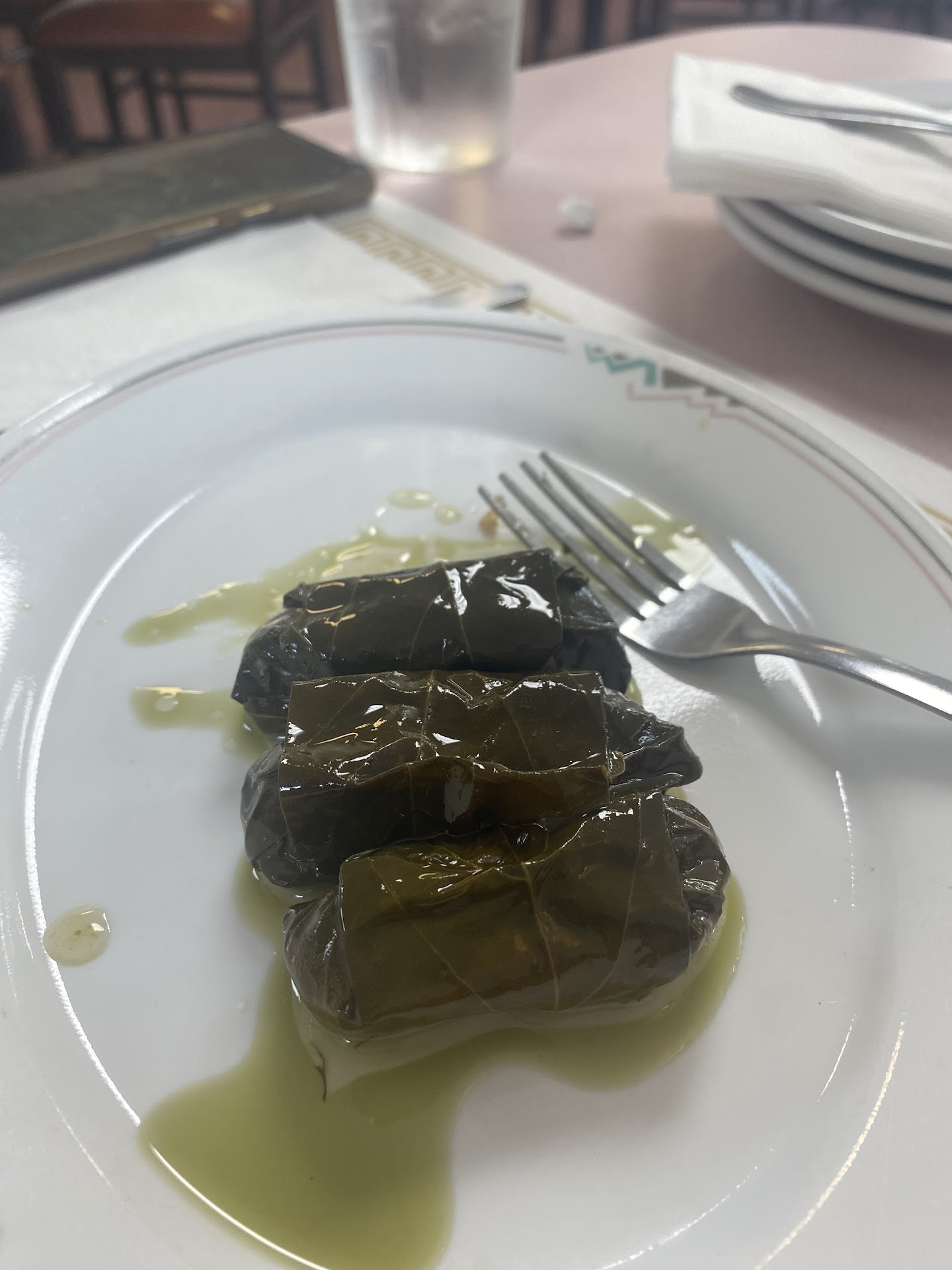 I started with the vegetarian sampler with pita bread. The pita was hot and crisp, and paired perfectly with each dip. Their hummus and tzatziki were my favorites of the trio. I loved the addition of cucumbers and tomatoes with the fresh feta. The stuffed grape leaves were delicious as well.