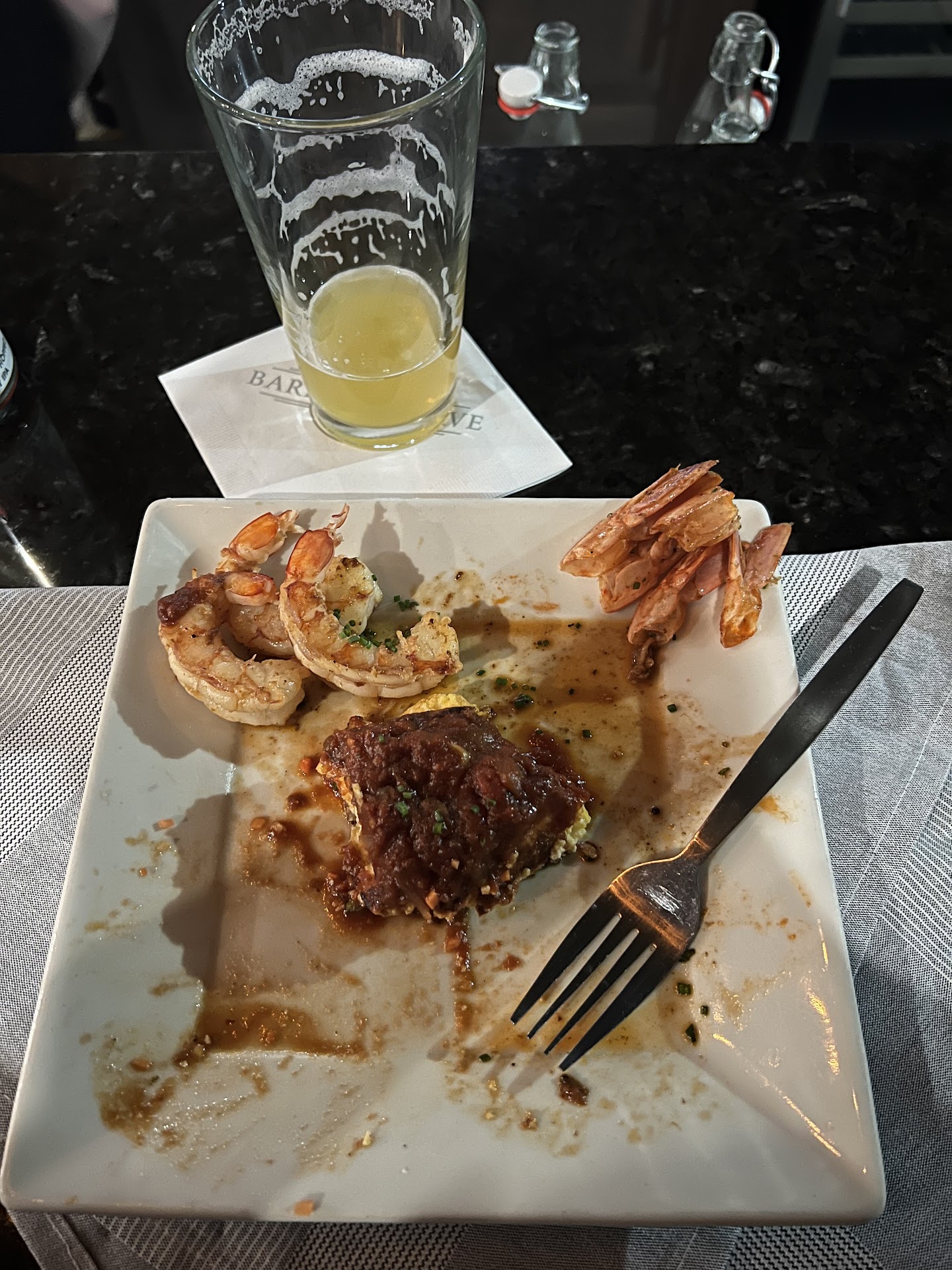 I ordered a single malt scotch and beer, along with the cheese plate. Parker, our server, had helpful suggestion to get an order of foccacia bread in addition to the cheese. The cheese plate came with fresh mozzarella and a hard goat cheese and something else, but had dried apricots and figs. It was...