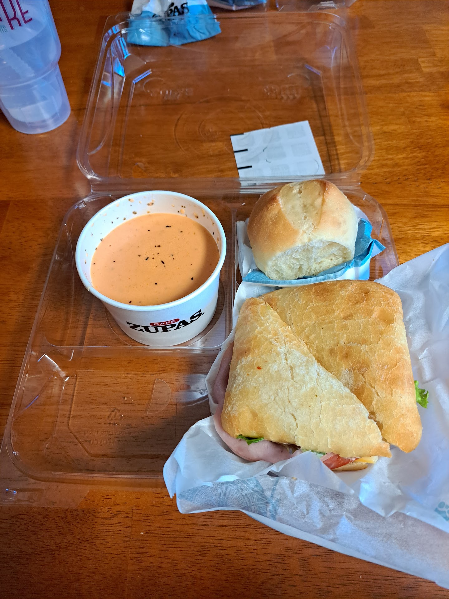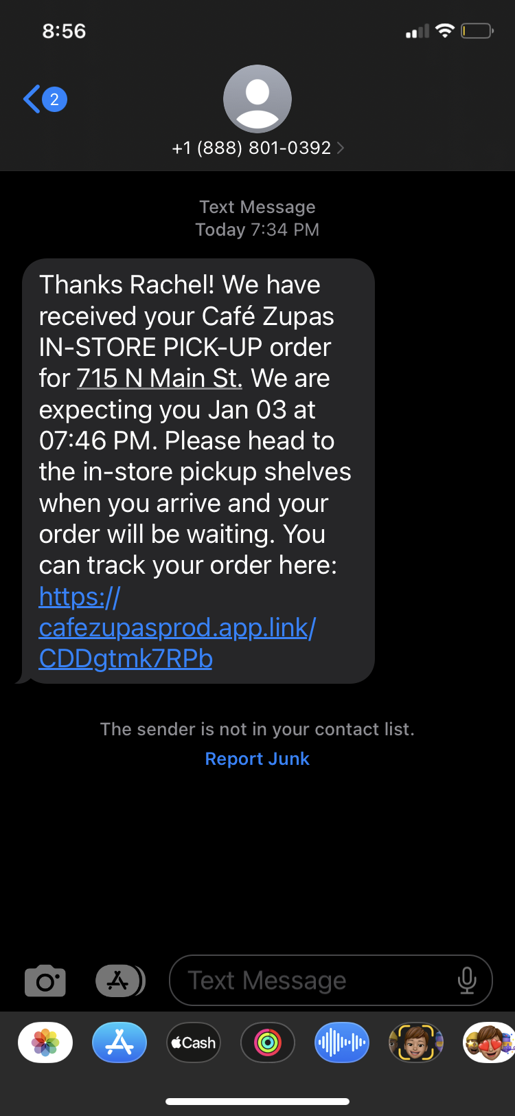 Read moreOrdered online and went to pick up when I was notified my food was ready. I waited in the mobile pickup/online order drive thru for 5 minutes with no response. I then tried to communicate with the drive thru order boxes themselves, again with no response. I drive around to the window and could see employees inside, but no one could be bothered to watch the drive thru. So I went inside. There were 6 employees there, but only 2 looked like they were doing anything. There was a line in front of me of 4 people, but only 1 employee was manning the front. The other employees were standing around talking and just staring at the customers. The one person working the front was so overwhelmed that to even get through one customer was taking 5+ minutes. Eventually I went around to the cashier's stand and flagged down an employee, who I then told I had an online order. She grabbed it and made a remark about how they thought I'd come through the drive thru. I responded saying I did but no one answered me. She apologized. I just want this feedback to make it to the employees working the shift tonight. The service they provided was not acceptable, and standing looking at customers in line rather than helping them or not looking at the drive thru is disappointing. I hope this Zupas...