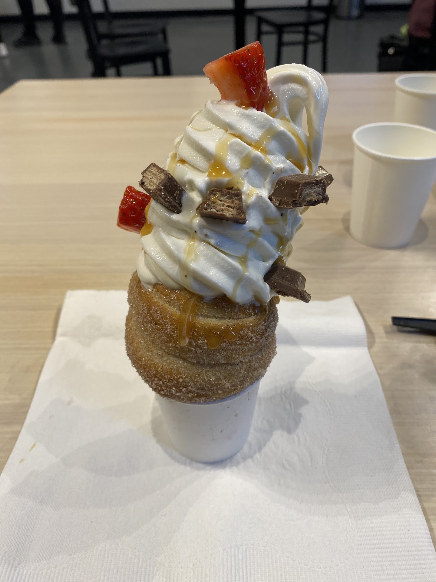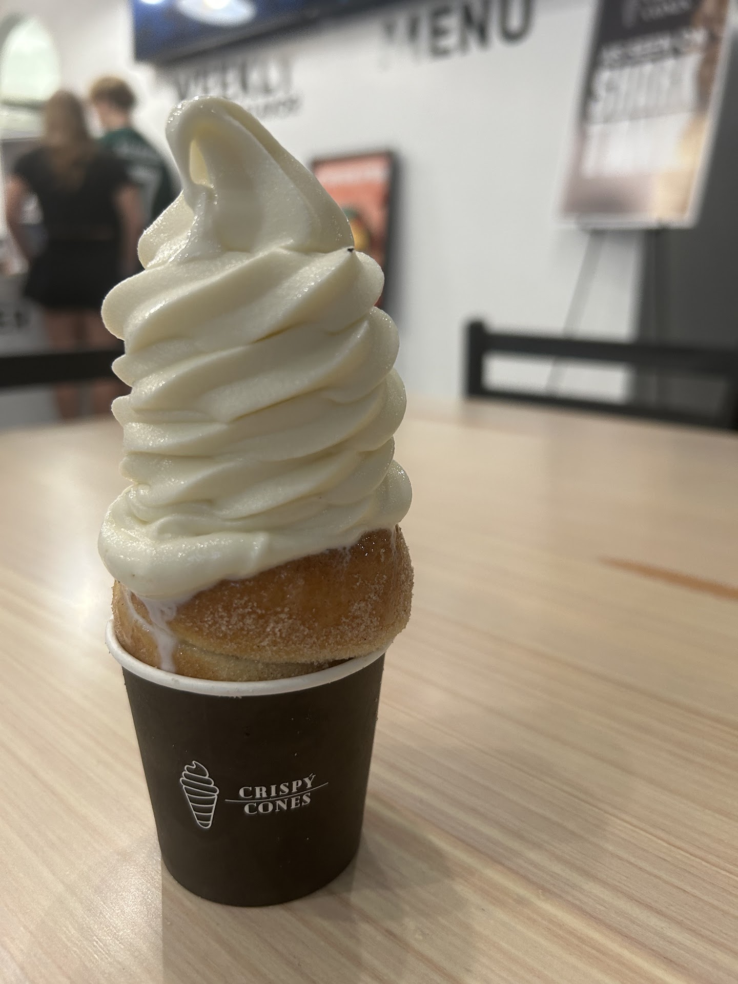 Not great, on many levels. Starting with the store concept itself - I'm not a big fan of the self-serve kiosk situation. Fine if I'm at a fast food place, like Cafe Zupas. But if I walk inside, and I'm about to pay maybe $8 to $10 or more for a freaking ice cream cone - can I maybe get some better personalized service??? And while we're on the subject of the self-serve kiosk - it wasn't even up to date! There were specials that were not orderable from the kiosk. I asked the attendant working there what button to push to get the special, and she told me I had to put it in manually - cone flavor, then ice cream, then spread, then toppings...are you kidding me!?! I've built excel sheets to track complicated business financials in faster time than it took me to put in my order. Then the ice cream. As mentioned by other reviewers - this is McDonald's level soft-serve ice cream. Nothing to write home about. Actually kind of crappy, and not very good variety. Then the toppings. Ok, nothing really bad about those - as far as taste and variety. But the mess. Oh, the mess. Just basically get ready to ruin the table you're eating at, the floor underneath of it, all of your clothes and shoes - everything. It's completely impossible to eat one of their signature crispy cones without making your immediate area look like a third world nation war zone! Ok, and the cone. Again, as mentioned in other reviews, it's pretty much just an over-fried donut in a cone shape. Not really very good at all - and even worse...it was doughy. It wasn't crispy! Isn't that literally the name?!? And then the price. $10 + dollars (with tax and tip) for an ice cream cone...it had better be the best ice cream I have literally ever had...and it's simply not even close. Wendy's Frosty's are better. The only reason this review is getting 2 stars instead of 1 is because of the person working there. They were very nice and helpful, and none of these issues are their fault. Great employees, but extremely bad business concept and execution. Can't wait for this place to go out of business, and see what comes...