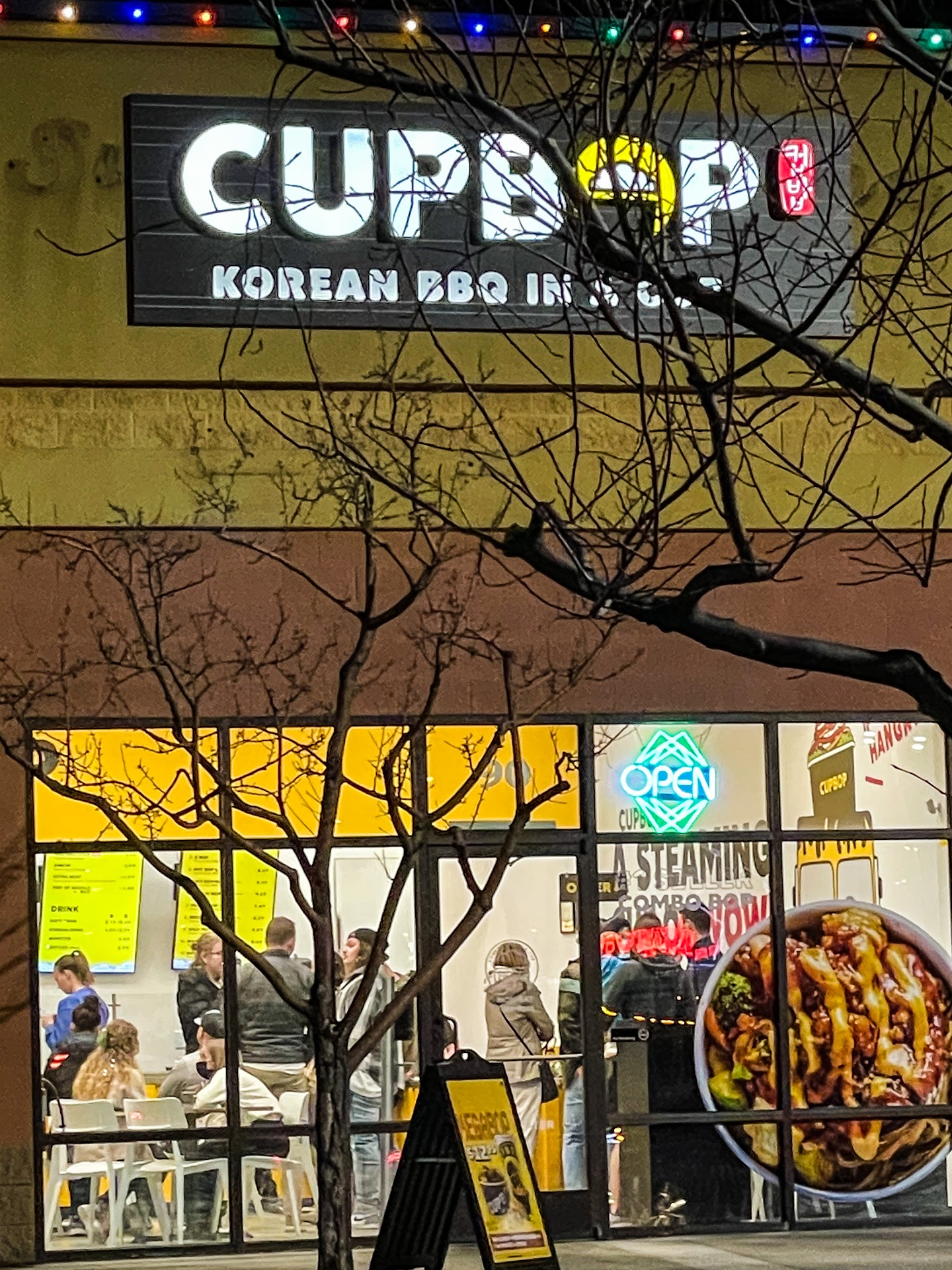 Ā Ā Ā Read moreHello everyone!! Tonight was my first time trying Cupbop.š¤ŖMan oh man the flavor coming from this little slice of heaven of a store was banging! Watch out Panda š¼ you got yourselves some competition. The family and I ordered to go. The time however felt like we were dinning in. Beware of Friday night because this place felt like a Black Friday sale. Everyone trying to get them goods. Took us 35 minutes to walk away with the goodies. My wife said it was busy with call in orders, and door dash. Dont forget the other small crowd of hungry beasts waiting to get their paws on them goods. So plan ahead specially if you have little whipper snappers of your own. Portions at this place are big. Lot of carbs in these cups. So beware if you watch that sort of thing. By the way the heat coming from the variety of sauce is astounding, and š„š„. I choose the mild which was rated 5 and was still a little hot. Wife had 7.5 and letās just say she is saving the other half for tomorrow. š All in all great place to eat. Iād give 4.8 if I could due to long wait. Oh yeah all the protein Iāve tried in the picture...