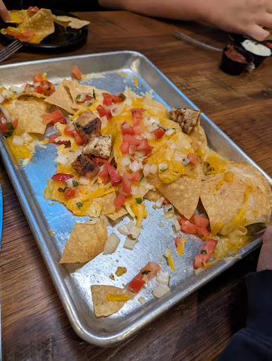 Well let me start with it being the first visit Husband and I took daughter and grandkids here for Dinner last night (sat) we arrived around 6:45 and we were told the wait time was about 35 to 45 minutes. So we decided to wait . There is a little gift shop so I figured I'd shop while waiting ( the gift shop was great , good deals and cute items ) and spent a little time shopping maybe 20 minutes or so. Checked out of the gift shop at 7:08;pm Went back in and bought something else about 10 mins later Went back outside and waited some more At around 7:50 pm we finally got our seats Ordered drinks and appetizers and they all came out quickly The nachos were not great I could've made my own at home better ( pic attached) Pretzels and cheese were good. Before appetizers came out we ordered our dinner so from 8:10 pm to 8:50 we waited for our meals Was giving a pop with a refill before I even received my dinner My sandwich was good I ordered bison but didn't taste a difference from that and a reg cow burger. IDK if I was supposed to taste a difference since the first time I've eaten it My husband ordered chopped steak and ordered it well It came out well done and tough he wasn't really happy but we were hungry because the 2 hour drive to our daughters we were waiting to eat to take them but anyway. My granddaughter ordered chicken tenders and she wasn't happy because her tenders had the (white stuff) tendons in them so she didn't eat much at all because she was picking at them as to not bite into tendon. The other 2 meals chicken wings and blended burger Were fine didn't hear any complaints The biggest complaints were the food not cooked as asked tendons in the chicken, wait time underestimated and the time it took for food to come to table. Waitress did say our food should be coming she was going to check and never came back until after runner brought the food. 45 mins after we ordered Needless to say I probably won't ever eat there again but I don't live there so I guess we wouldn't' be there much anyway. I will say that it seemed like it was being run by kids and teenagers I don't think in our visit did I see an older adult 18+ other than the gift shop There was a hostess that was doing a great job at multitasking cleaning tables and hostessing so kudos to her The place was cool the shop was great and the ax throwing looked fun. Might want to rush the food could move people in and out quicker to make up for long wait times. Was the worst way to spend over $100 Adding that the people behind us that sat down after us got their food about 30 mins...