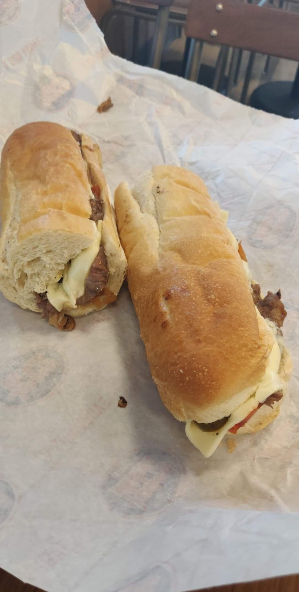 Very delicious sandwiches. I recommend having a stack of napkins handy because they are wonderfully juicy. Staff was not the most personable, but they took our order and made our food in a fast and efficient manner. We went later on a Saturday night and the tables looked like they probably had a busy shift due to most of them being dirty. Very pricey for the fact they are just subs, but they will fill you up and you will leave satisfied.
