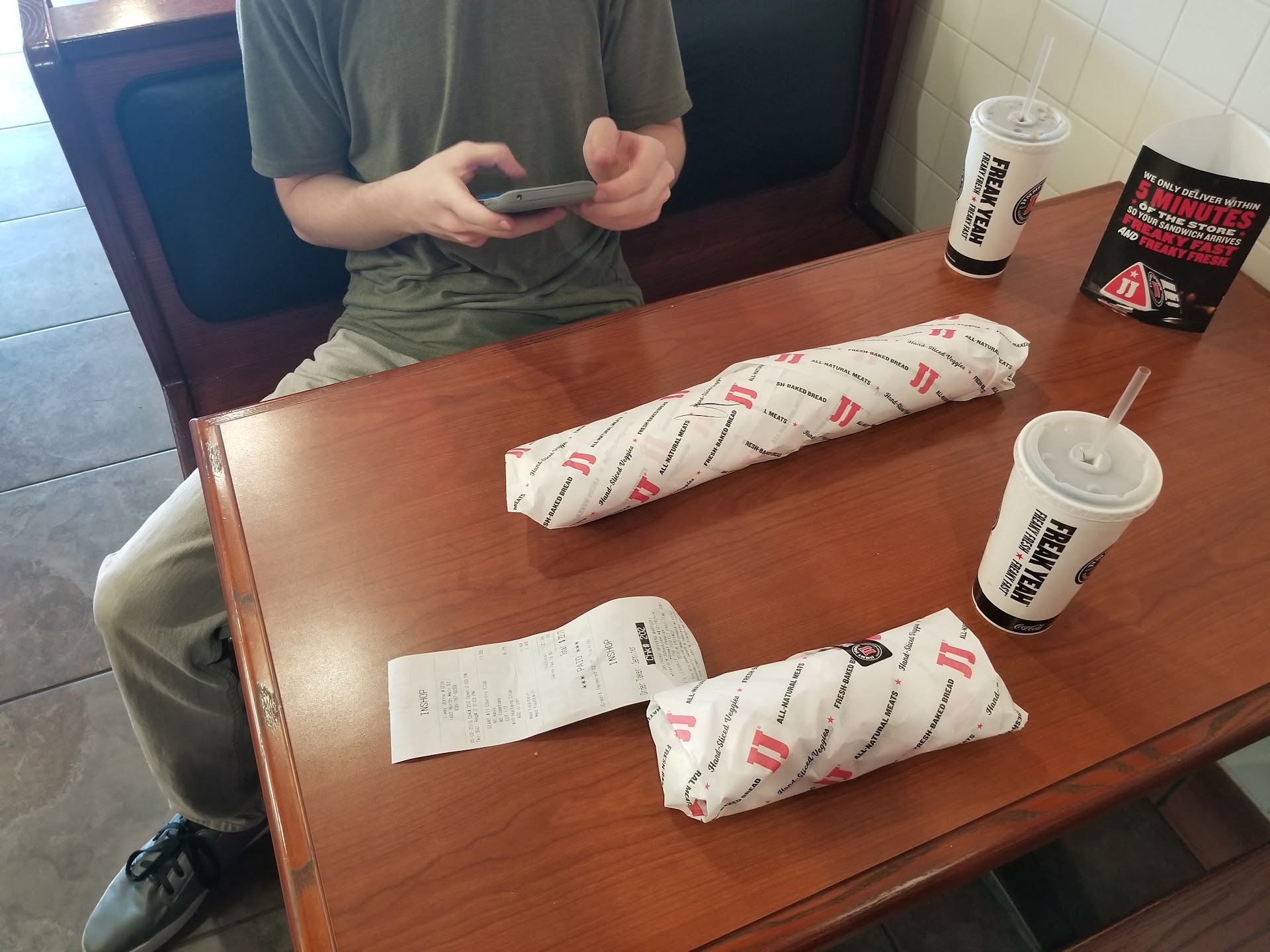 I was not asked if I wanted it, but my sandwich was toasted. I did not know it would be automatically toasted. I hate toasted sandwiches. There’s nothing worse than hard bread. I was over toasted. It was so hard. Then to top it off, my ultimate Italian sandwich had so much oil on it, not only was the entire sandwich coated in, but there was a puddle of oil inside the wrapper. And then it gets worse. It dripped so much that my $40 blouse has oil all over now. I’m grateful I came home and changed out of my $80 work shirt; otherwise I’d be out $80 instead of $40. That was bar none the most disgusting sandwich I have eaten. Rock hard on the outside, and soggy on the inside. The lettuce and tomato were so slimy. I don’t waste food, which is why I ate it anyway. I would have brought it back except that I live 30 minutes away from that location. I don’t know what kind of training they received at that store, but I’ve never had a bad experience at a jimmy johns before. My husband wanted hot peppers on his gargantuan and there were barely any at all. I’m just glad we didn’t pay extra for them. What that sandwich did have though, was probably a quarter cup of mayo. He said it wasn’t that appetizing, but like me, doesn’t like to waste food and ate it anyways. These sandwiches are too expensive to be as bad...