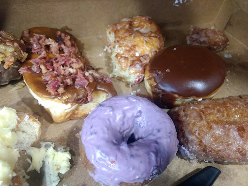 In the end we bought a dozen. Our favorites in no particular order were the German chocolate, maple bacon bar (so much delicious smoky bacon and it was chopped which makes every bite full of bacon goodness) buttermilk bar, and the coconut pie spudnut (which was so tender and flavorful I wish it was on the menu daily not just a flavor or the day) and last but not least their blueberry cake one was a must have and one I will buy again and again.