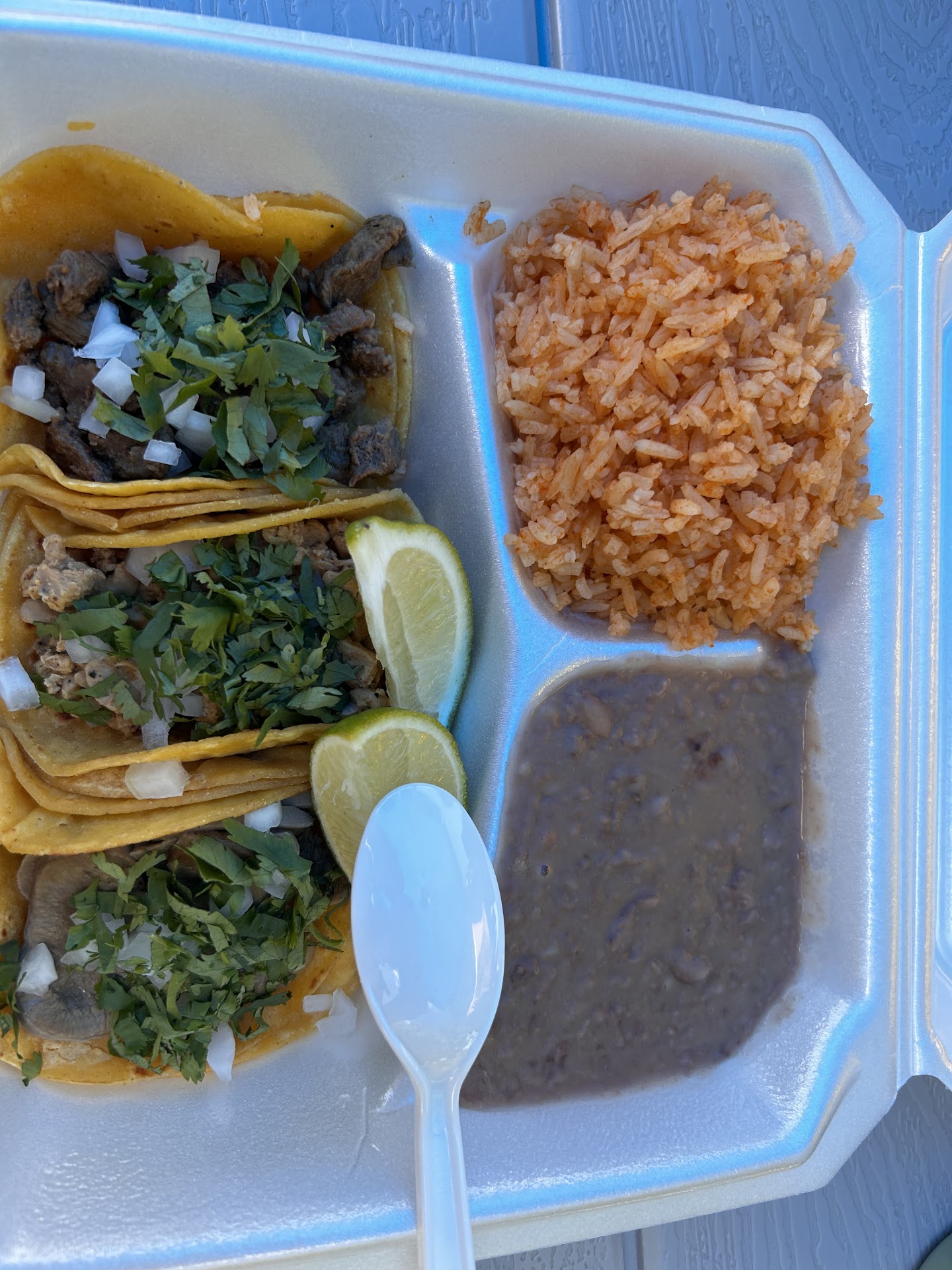 Ā Ā Ā Read moreThis was just okay. The service was really great and friendly, but the food was really expensive for a taco truck. We originally wanted tacos, but it was 2.50$ per taco so we decided to get burritos instead. The meat was tender, juicy, and flavorful, maybe just needed a little bit more seasoning. The refried beans inside needed salt and there was a little bit too much of it. You couldnāt really taste the rice and I wish they put more onions and cilantro in mine. Would have also like more cheese in mine. We did go right before they closed, so maybe the food tastes better in the prime of the day, but as it stands the food was just alright, but Iām going to try it again because the service was that...