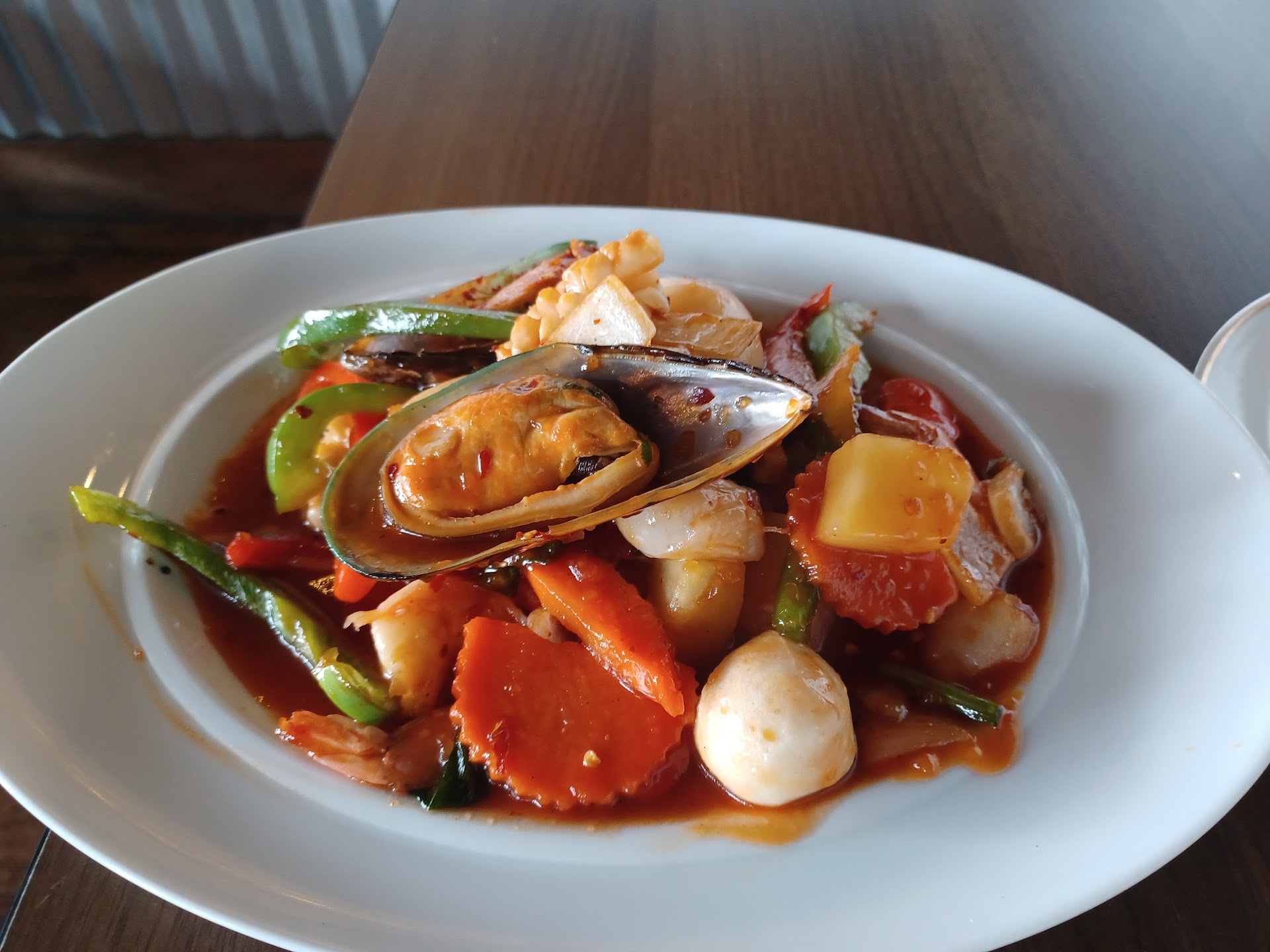 Read moreWent there for lunch with 6 people.They only do electronic menus. We used their iPad, but they wouldn’t let us order off the lunch menu in the app, (apparently it only applies to Ogden location)?? Pricing was very high for portion size, quality and atmosphere. That would be reason enough not to return, but there is more. We ordered 6 items, and each one came out like 5-10 minutes apart from each other. Fortunately we were sharing, but it was very awkward to eat two bites of each thing 5-10 apart. I asked if they could bring the other white rice portions of the other items we ordered sooner (they come separately) so we had something on our plates to eat with the two bites of curry. They acted like that would be too hard to do, but we could pay for more rice separately. Ha! Food was ok, straightforward Thai food nothing too spectacular especially for the price - around $140 for lunch, ouch!! The only spot to seat people seemed to be way in the back by the bathrooms which didn’t add to the atmosphere that was ok, clean in general, but music and general vibe...