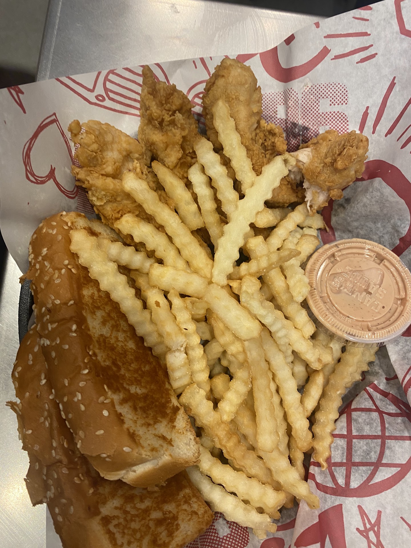 Ā Ā Ā Read moreI frequent the Raising Cane's in Salt Lake and have grown to enjoy it. They only really do one thing: chicken. Served with some frozen, unremarkable crinkle cut fries, some mediocre Texas toast, and "house made" lemonade, which is pretty average. Overall, not bad for fast food, but maybe not quite worth all the hype, for the cost.