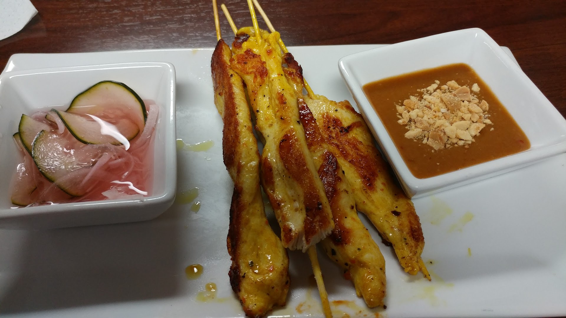 Next I got my appetizer, the chicken satay. Apparently not only does Sabores skimp you out their WiFi but also their meat, these chicken breast on a skewer were cut as thin as a slice of paper.