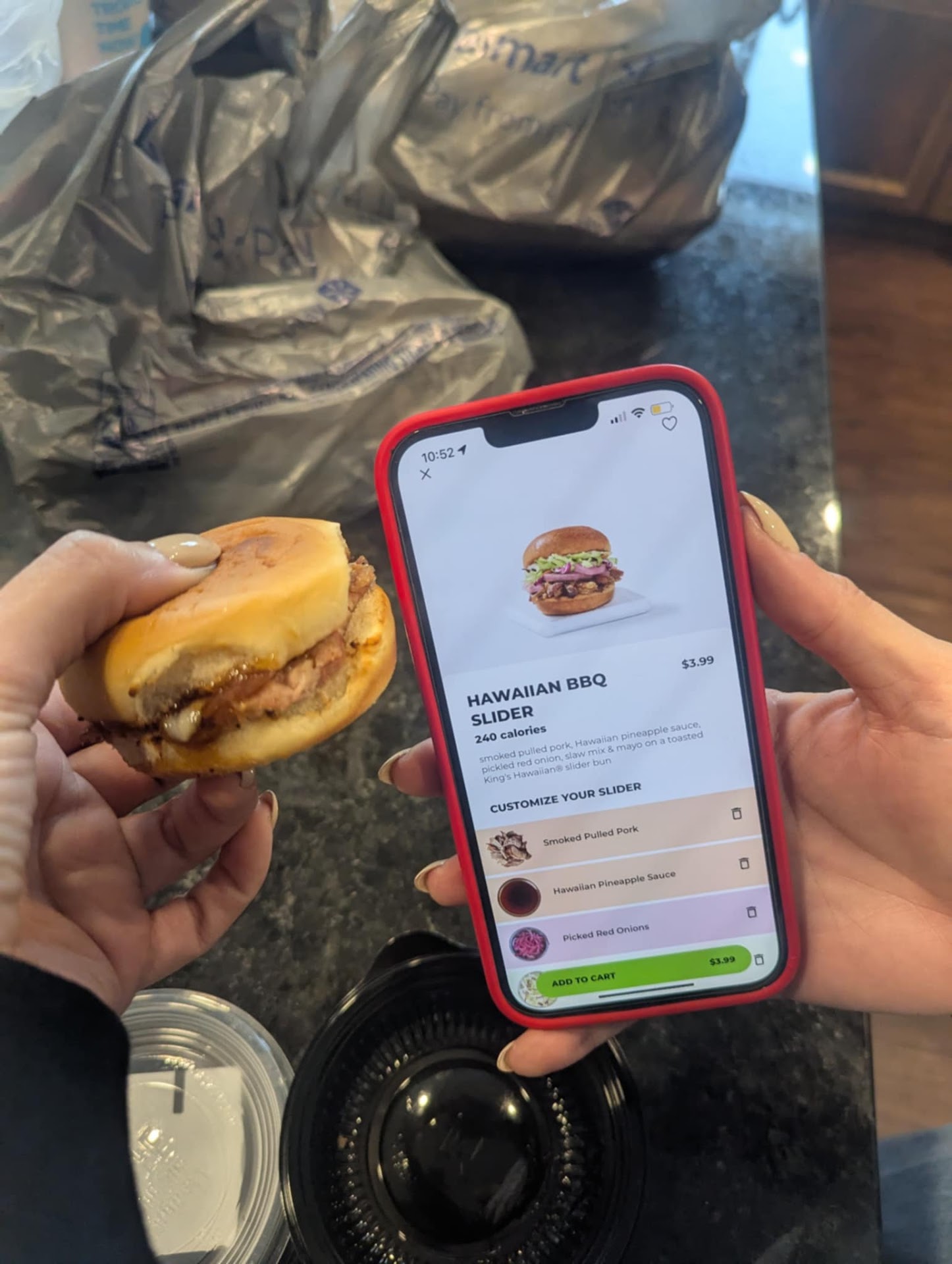 I was so irritated that I went inside to ask about it, and that’s when they told me they were out of coleslaw and the proper packaging. They offered a refund or to remake them the same way, but at that point, I didn’t want to deal with it and took the refund. What’s even more frustrating is that the amount of pulled pork on the sliders was a joke—barely anything there. We’ve had these before, and this was nowhere near the portion we’ve had in the past. That issue wasn’t even addressed when I went inside.
