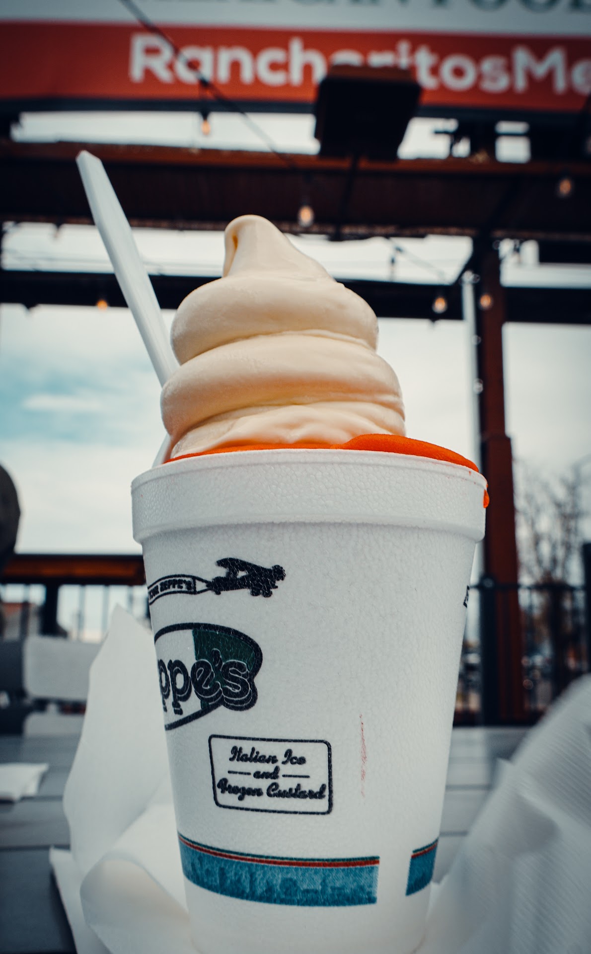 The custard and Italian ice was really good - I got half mango, half strawberry Pina colada, with vanilla custard. I think the regular size used to be considered a small, but it still is pretty good sized. I might have missed this but I did not really see any napkins or trash areas other than the inside area so that would be nice for them to improve on.