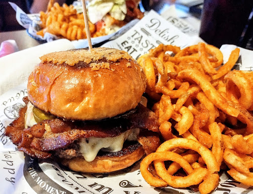 Just making this experience even better, they had the perfect amount of Bacon to wrap around the Burger, a Crisp Toasted Bun, Pepper Jack Cheese to connect it all together, and a handful of curly fries to top it all off for a...