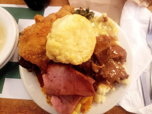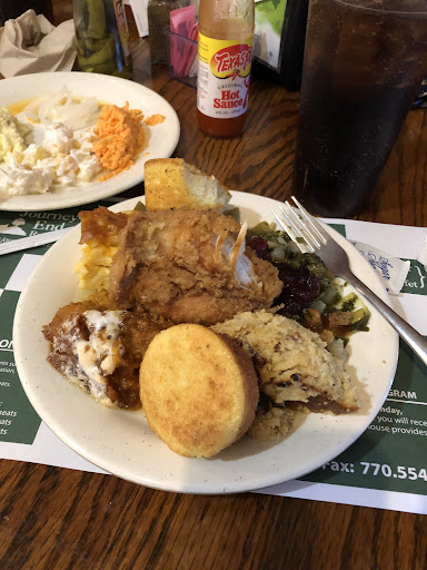 The fried green tomatoes were my favorite. Not as crunchy as they should've been, but they were okay overall. I didn't eat the fried chicken, which is what Journey's End is known for, because it didn't look appetizing. When I picked it up with the tongs, the soggy breading fell off. Just no.