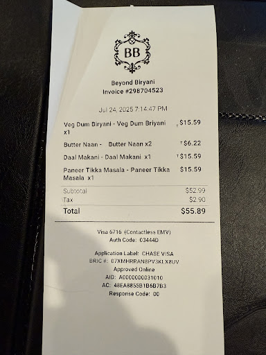The dishes we had were daal makthni, paneer tikka masala, & vegetarian dum biryani w/ butter naan. There were plenty of food and flavors to be shared between the 2 of us. In fact, we even took home some left overs which I am so excited to get to! đ¤đ Iâve been to India before, and sometimes I miss the authentic flavors because for some reason a lot of the restaurants tend to taste a bit muted outâmaybe to cater the general American audience. But Beyond Biryani literally served. It was so delicious that I nearly forgot we were on a dinner date! All the spices and herbs blend so beautifully well where it doesnât overwhelm you to repulsion.