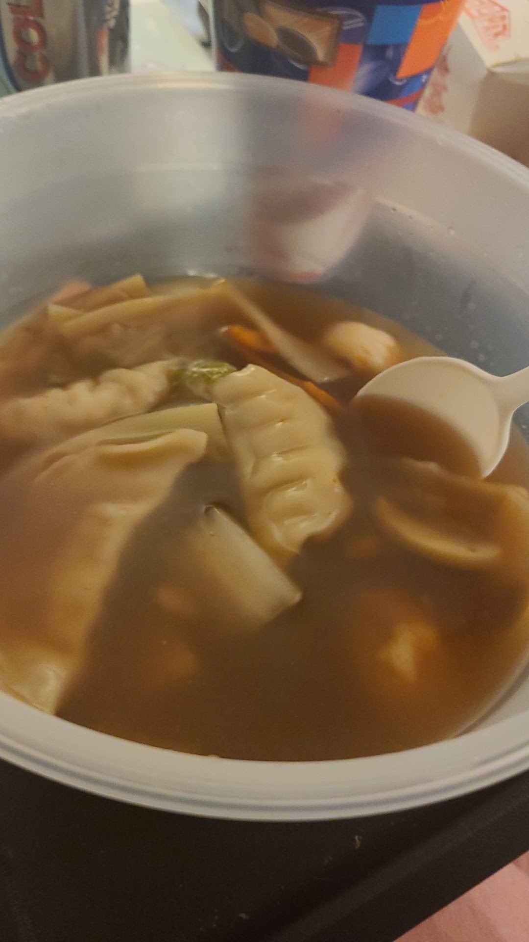 I asked for a spoon as well because this meal came with rice. She kept organizing something over the counter as If she did not hear me and couldn’t see me standing there. So I had to ask again, and she just gave me the spoon. This time I was irritated that I did not even bother to say thank you.