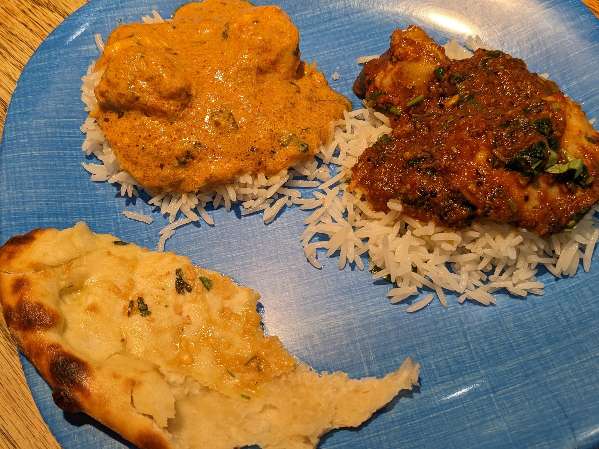 Garlic naan - 5/5 Probably the best naan I've ever tasted. It's fluffy on the inside, yet slightly crispy on the outside. Definitely get some!