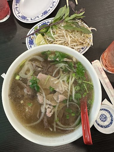 Read moreWe got there, and we were attended immediately. We got seated and just looking around, first it was quite full (very good sign), second the place was decorated so nicely. I have Vietnamese friends and I gotta say, the decorations and vibe was Vietnamese, and it was so calm and comfortable. Third, the music matched the whole place. Fourth, we got what we wanted ordered within a timely manner and welcoming service. Fifth, we didn't wait long for the food(5-10min), and the food was amazing. The broth was so rich with flavor and the meat was delicious. We had spring rolls as appetizers (shrimp and chicken), delicious, everything tasted fresh, the veggies too. I would drink my water and it would go down by half and the server paid attention and immediately served me more water. They want you to have your food and drinks, nothing missing. Friendly all around. The price was reasonable as the bowls are huge and filled. Absolutely satisfied and definitely...
