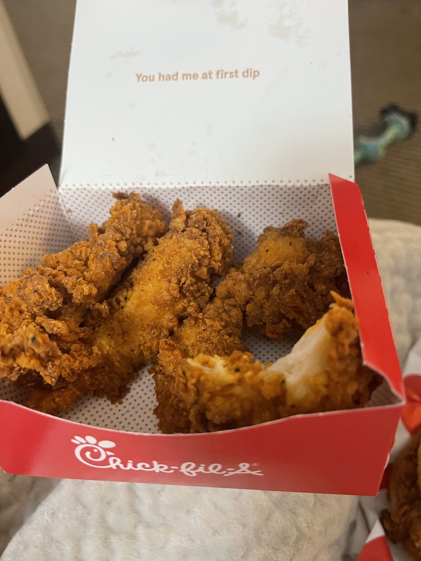 Read moreSo let me start with, how much I enjoy Chick fil A, very much, but today, I couldn't believe my experience. In Drive thru , ordered my food, I ordered a kids meal nugget with vanilla shake, for myself. Tasted the fries, cold and.pasty, parked my car, went inside, did not get the best customer service, she looked at me like I had spinach in my teeth. The other employee that I encountered before her, just looked didn't say a word, bout I will allow him a pass, because, i believe there was a language barrier. So explained my situation, she hurriedly grabbed another order of fries , I proceed to my car, guess what???? Cold fries, again, I go back inside and she was really looking at me, sideways and I saw her go over ,by the fries and a man comes, brings me the fries and says: they just came out , i say,, are you sure,? yes he says ,Well the fries were warmer than the other two but no where near , straight out the grease....i was fed up and this had already taken away from my time and experience. So I decided, I would write a review, dont have time to spell check. Now what??? Chick fil A.....not my business...