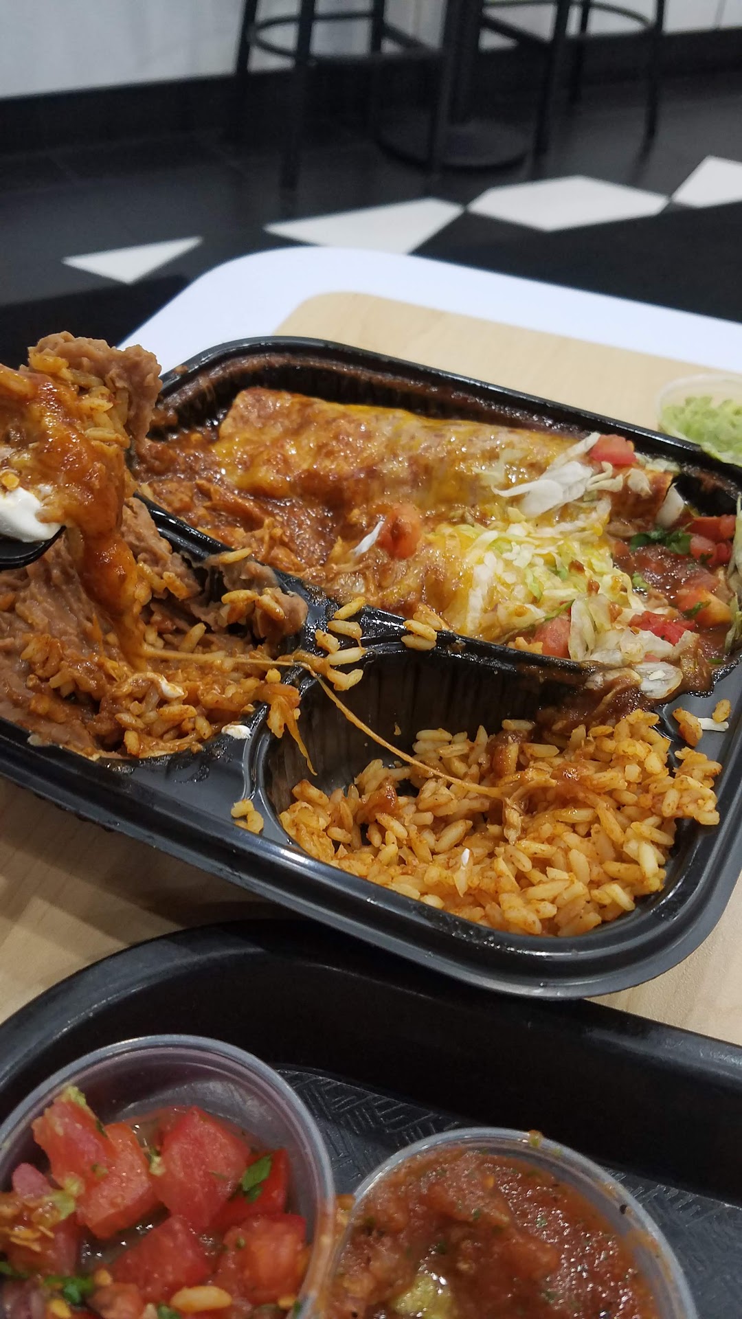 Read moreI don't get it...maybe I just ordered the wrong item off the menu, but the enchiladas verdes was utterly terrible. I couldn't finish it - which is very much unlike me! And I'm not terribly picky... The salsa bar was pretty neat, all of which were pretty good, but once the meal came (in a little black plastic dish reminiscent of a TV dinner...hmmm...), I was greeted with a chunk of fat unfortunately, though I wont count that against them, but the sauce was overwhelmingly...pungent, almost. It was too strong, and too salty. I tried mixing in my beans and rice to counter it. Nope. Added sour cream, which helped a couple bites...nope...then dumped the little dollop of guac in there...nope and nope. I dont remember the last time I didnt finish a meal. Anywhere. It could (and must - hence my "I dont get it) very well be that there's better stuff on the menu but I...