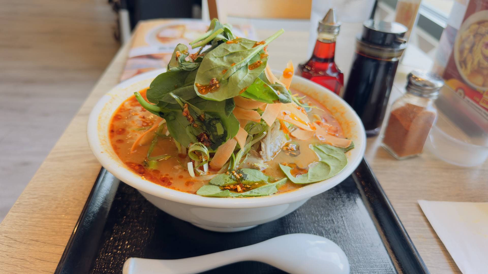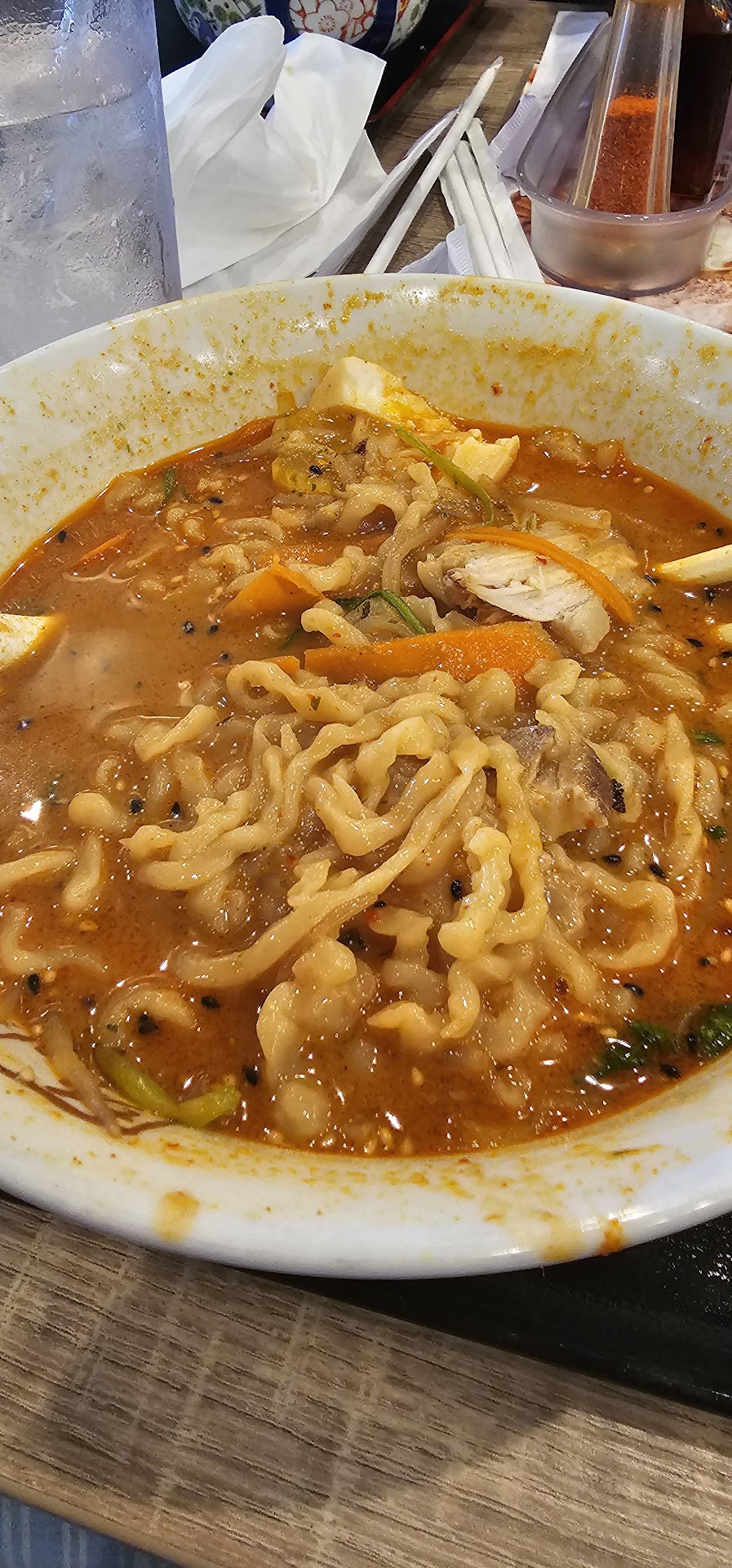 Read morePerfect meal. Entering the restaurant I was greeted with a smile and a Japanese Hello. I was seated immediately and given water. Menus are the the table. I knew what I wanted from looking online prior. It was just me eating, so for one person you can sit at the "bar"; a long table that faces the wall with single chairs or you can sit at a table. I sat at a table because i didnt want to face a wall. I ordered Spicy Miso Ramen size regular with 2 orders of Seasoned Eggs (soft boiled to perfection). Ramen is all about the (broth) soup first, then noodles, then toppings. The Broth was made to perfection, very clean. No after taste and boasting with flavor through out each drop. Very crisp. The noodles are hand made with a perfect chew and most of all not over cooked. The pork was literally to live for; buttery and melt in your mouth. Not because it was covered by broth, but because the Chefs know how to bring love, passion and home, to the table. Perfectly seasoned on its own, then added to the Ramen was unbelievable. The Chili oil was clean, not burnt and a great taste of fried garlic. Robust flavor sprinkled over fresh spinach leaves and perfectly shaved fresh carrots. The cabbage in the soup was crispy and cooked perfectly; soft still with a bite. Not over cooked. Baby this was a sexy meal! As a finished the Host and Chefs greeted me out. Honestly you can feel the warmth of the restaurant, the ambiance is perfectly cooked food the surrounds the inside. You can feel the Chefs and workers...
