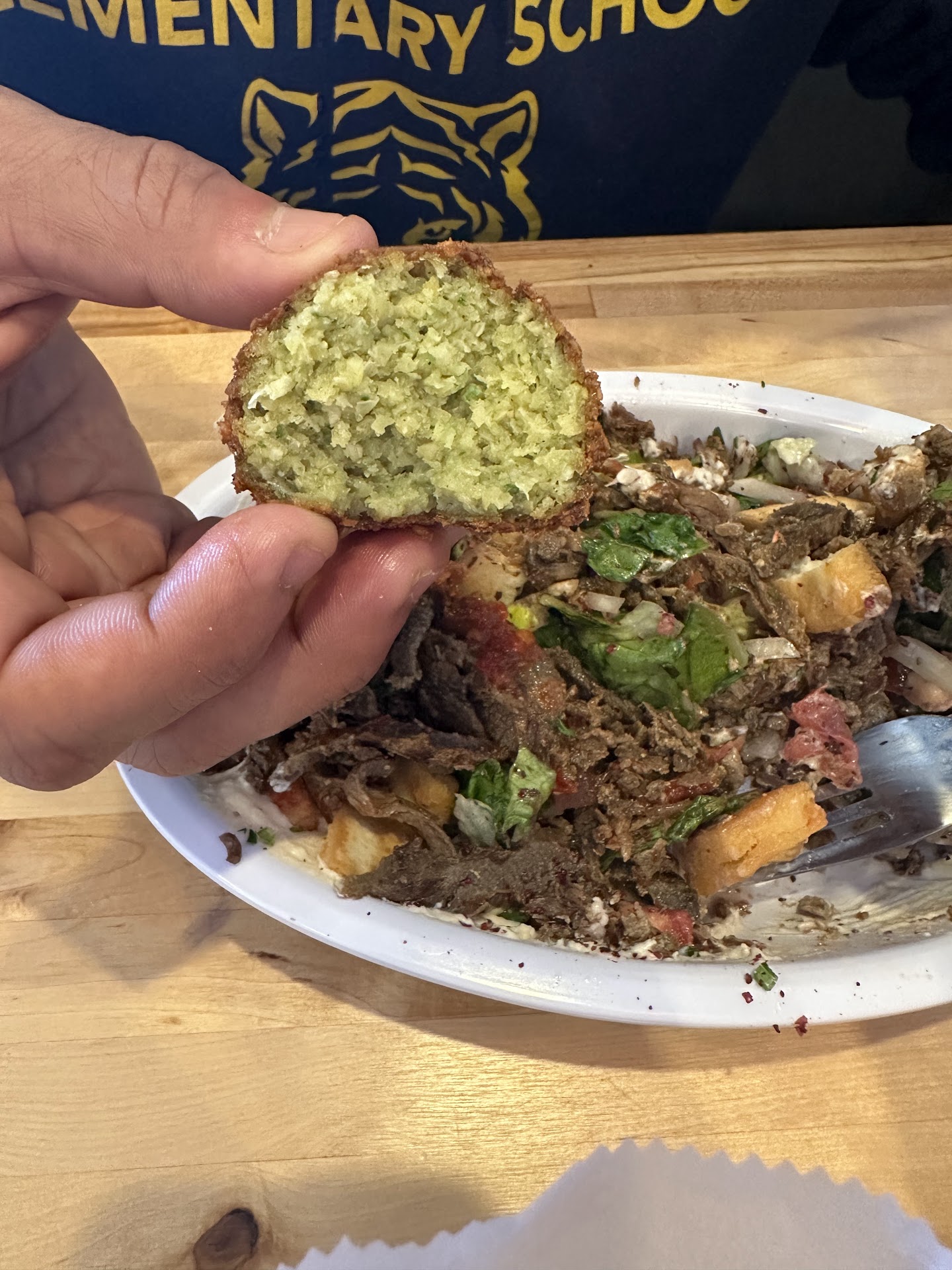The problem with this place is that there’s no flavor to anything. When I first opened up the falafel ball, I thought to myself it wasn’t a deep green color (pic included) and you don’t taste herbs or seasoning. It’s more like a falafel bread ball.