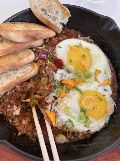 Bites and Bashes Cafe has a very creative and amazing menu with tons of variety. Breakfast burritos loaded with juicy Korean BBQ beef.. home run. The food is as pretty as it is delicious. The pancakes are so big and fluffy with ube syrup that rivals anything you get in Hawaii. The menu has all sorts of creative breakfast and lunch items that make it really hard to order because there are so many intriguing items.. the salads and sandwiches look amazing and there are Korean inspired entrees, noodles, fried rice, and lots of fun appetizers. There are about 10 tables inside and more seating outside. The coffee and tea was also very good passing the latte test with flying colors. We can't wait to come back and try more dishes as this is a unique menu and they put a ton of care and love...
