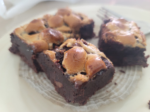Marshmallow brownie - GLUTEN FREE and yet does not taste "healthy" in any way lol. The dark chocolate balances out the marshmallows and the crunch of each bite completes me.