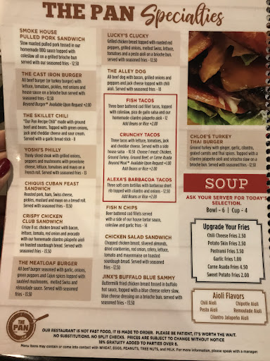 Recommended: Chloe's Blueberry Pancakes (or any of their specialty pancakes — they're all great!), Crispy Chicken Club Sandwich, The "Original" Loaded Hash Browns, N'awlins Bananas Foster French Toast, The Havana Pizza, Fried Chicken Salad, Seasoned Fries, Specialty Lemonades...