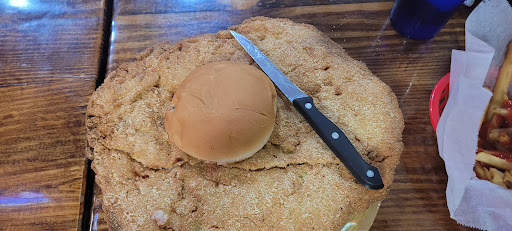Read morePretty clean roadhouse bar and grill. Good food and plenty of it for the price. The signature sandwich is a monster sized pork tenderloin the size of a dinner plate. I had a 1/2 pound mushroom and swiss burger, my friend an order of chicken strips and we split an order of fries. Our bill with tip was $20. They offer a typical variety of soft drinks as well as popular domestic swill known locally as "beer". But to each their own I guess. The servers are mature and straight forward and politely nice. All in all I give it a 4 out of 5. I'll be back. And not in a Termator kind of way. If they offered one or two craft beers I'd be...