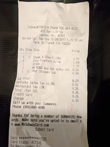 Read moreSo I thought I would try a online order at this store since it is closer to me. Ordered a footlong coldcut combo when I got home and opened it up there was just a few slices of balogna in it, Where was the ham and salomi? Ordered it with extra mayo, no onions, lettuce, tomatoe, American cheese, oil and vinegar. There was no mayo on it, there was no oil and vinegar, there was onions in it took them out, had to add our own lunch meat and mayo. Not a good experience, Head Store Manager where are you? You need to straighten this store out, back to the...