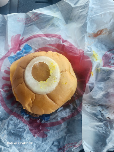 Read moreI had to run an errand during my lunch break and only had an hour to eat and complete the errand. I stopped for a single cheese burger that I could eat on the go. As I pulled away from the drive-thru window and sat at a traffic light, I unwrapped the sandwich only to find that it was literally smothered in mayonnaise. There was so much mayo that it oozed all over the bun and my hands. I had to put it back in the bag and dispose of it because it was not fit to eat. To make matters worse, there was only one napkin in the bag, which didn't even come close to absorbing the greasy mess on my hands. I hope the employees can be trained to prepare food properly and avoid handing out messy and sloppy to-go orders to people on the run. The one positive thing from this very unsatisfying experience was the service was speedy. Still hungry, going to the snack machine...
