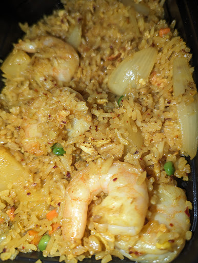 The pineapple fried rice has some yellow curry seasoning and is perfection. Chunks of pineapple add sweetness between onions, peas and seasoning.