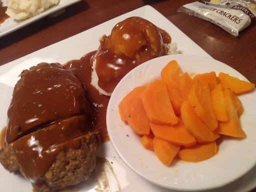 We both got the meatloaf dinner. They didn't say that each portion was a legit entire meatloaf! Again, perfectly seasoned! Also a nice firm, but soft texture. It was not mush, which alot of places end up serving. Although, not on the menu, they do have mashed potatoes and they do it right.