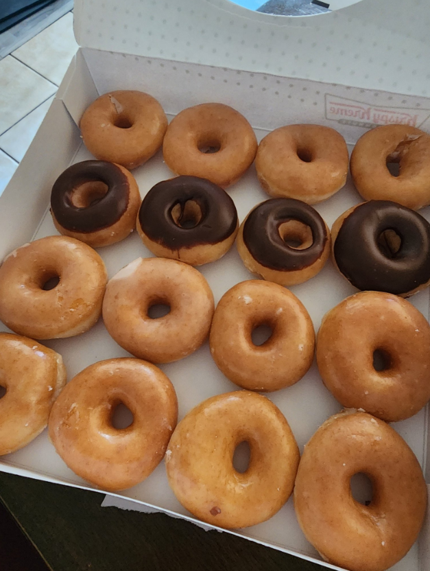 Read moreI usually LOVE Krispy Kreme Donuts but I was VERY disappointed in the place. The selection of donuts was small and they did not seem to be making anymore considering there were tons of people working. I picked out my dozen, then it took almost 10 min for someone to check me out and the guy who ended up ringing me up was rude and seems annoyed. I got a dozen donuts plus a single donut. He didn't say anything to me, opened up the single donut bag looked inside then left it open and walked away to the back drive up window to ring up the order. Then finally asked if it was together I said yes, then he walked away again. Then came back to take my card, didn't tell me the total. I told him I had the rewards card. He just stared at me (apparently not knowing what that was), then some lady came over looking like she was opening one of the cash registers in the front. She ripped a piece of paper off receipts and asked for my phone number. She wrote it down and handed it to the guy who went to the back. I know I had a free single donut on my acct, but he never took the cost of the donut off and last I checked my acct the dozen donuts I bought did not show up on my acct either leading me to believe he didn't know what to do with the number or look up any information to give me the rewards. All of that was bad enough since I stopped "quickly" on my lunch break, but then when I tried a donut they tasted stale. Usually KK is soft and d delicous and dissolves in my mouth but this day, they were not good. I ended up throwing away 6 donuts by the next day. So sad! I will give this location one more try, because this is not the first time the donuts didn't seem to be fresh. But if the next time I go the food and service is disappointing I will stick to LaMars, they never disappoint. Get it together...